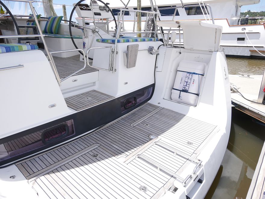 Helm visibility is good from either station. Controls are within reach. For owners who enjoy sailing as much as anchoring, she offers enough engagement without excessive workload.