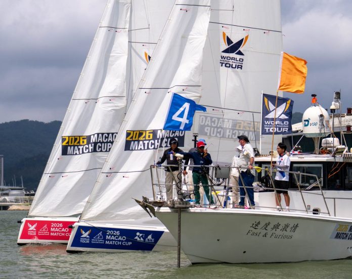 Macao, China (26 March 2026) – Day Two of the 2026 Macao Match Cup delivered a steadier breeze of 6–8 knots as twelve international teams fought for points in the qualifying stage. French skipper Aurélien Pierroz and his Match Again by NET crew lead the standings after posting seven wins from eight races. Sweden’s Oscar Engström sits close behind with six wins from nine races.