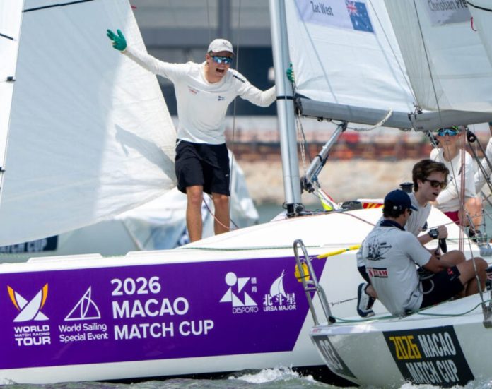 A challenging and tense day of racing marked the opening day of the 2026 Macao Match Cup today, as the opening event of the 2026 World Match Racing Tour season got underway on the waters of the Maliuzhou Waterway in Macao. Twelve of the world’s best international match racing teams, including former Match Racing World Champion Nick Egnot-Johnson from New Zealand have arrived in Macao this week in their bid for the 2026 match racing world title.