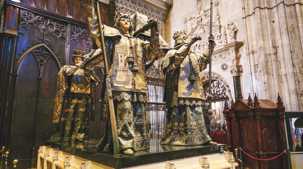 He was disinterred and buried there in 1542, disinterred again and moved to Cuba in 1795, disinterred once again in 1898, and brought to Seville. He now lies in the city’s mighty Cathedral.