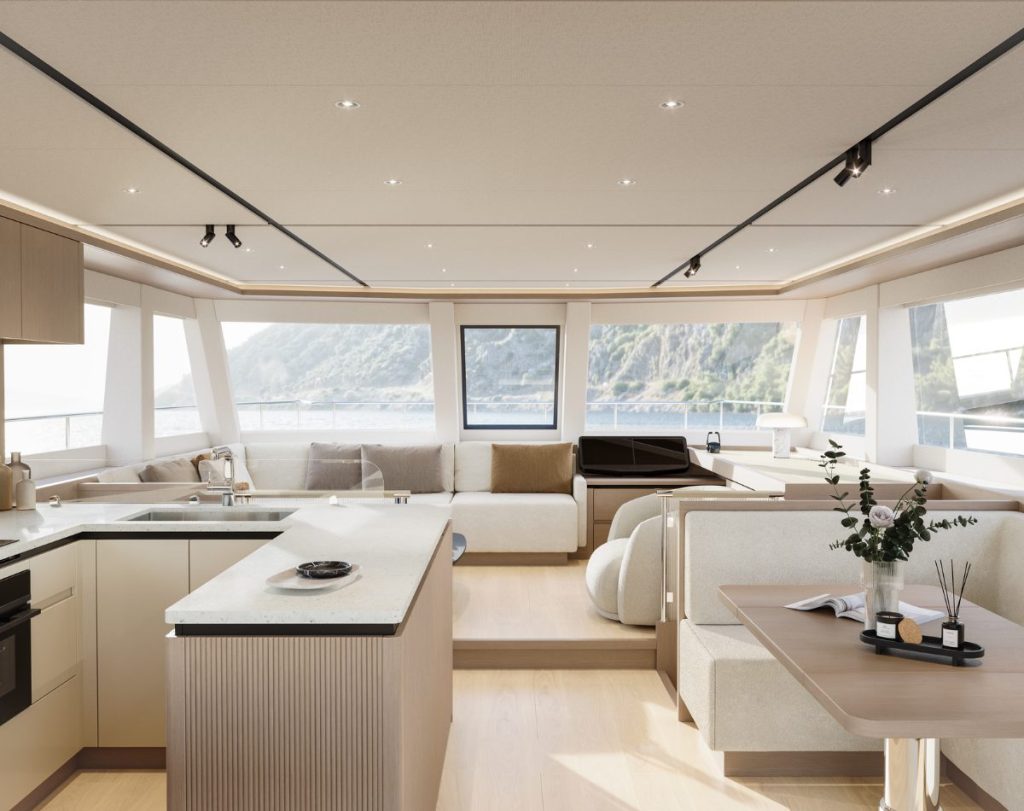 Developed in close collaboration with ILIAD Catamarans, the interior design by BAZ Yacht Design introduces a refined design language, combining material clarity, spatial balance and a warm, liveable atmosphere.