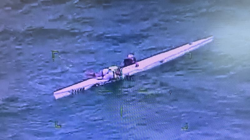Police found them in the water, holding onto their kayak unable to get back in because of rough seas. Both were wearing lifejackets.