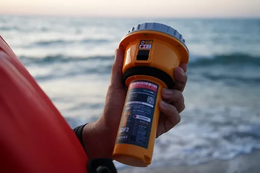 Ocean Signal has also added a touch of technical brilliance to its design. The EDF2 emits the Morse Code signal for SOS using alternating red-orange and cyan LED flashes. The sequence begins with three red-orange flashes (S), followed by three cyan flashes (O), and finishes with three red-orange flashes (S). Simultaneously, an infrared (IR) light flashes the same SOS pattern, allowing search-and-rescue teams using night-vision goggles to detect the signal from even greater distances.