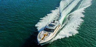 Compared to the range’s flybridge models, the 53 S has much less windage and greater stability, so ...