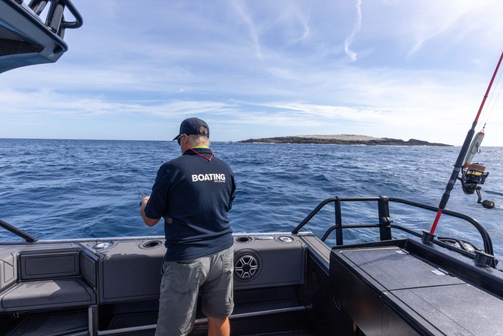 The passage out was comfortable, the 800HTWA shrugging aside perhaps half a metre of leftover swell and some wind chop from the easterly breeze. The wind was predicted to swing north and drop as the day progressed. At 22-25 knots the ride was smooth and dry, and we reached our destination in less than an hour.