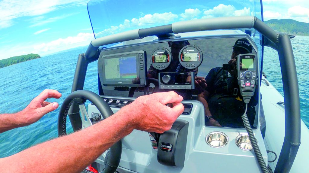 Test day is a beautiful, calm summer morning, so not really what you want for putting an adventure RIB through its paces, but we improvised with some wake-bashing. Apart from being great fun, I was able to experience firsthand how stable this boat is. For a couple of my tests, I put the Navigator through a tight 20-knot turn and crossed our wake at about 10 degrees, intentionally putting the boat in an unstable situation. A raised eyebrow and faint look of disdain from Peter (sorry Peter, I probably should have warned you…) was the only reaction. The Navigator 20 barely noticed, the new hull shape clearly proving its pedigree. At max power executing multiple high-speed turns, the boat was as solid as a rock, the half metre diameter tubes doing an excellent job of deflecting spray and keeping the boat’s interior dry.