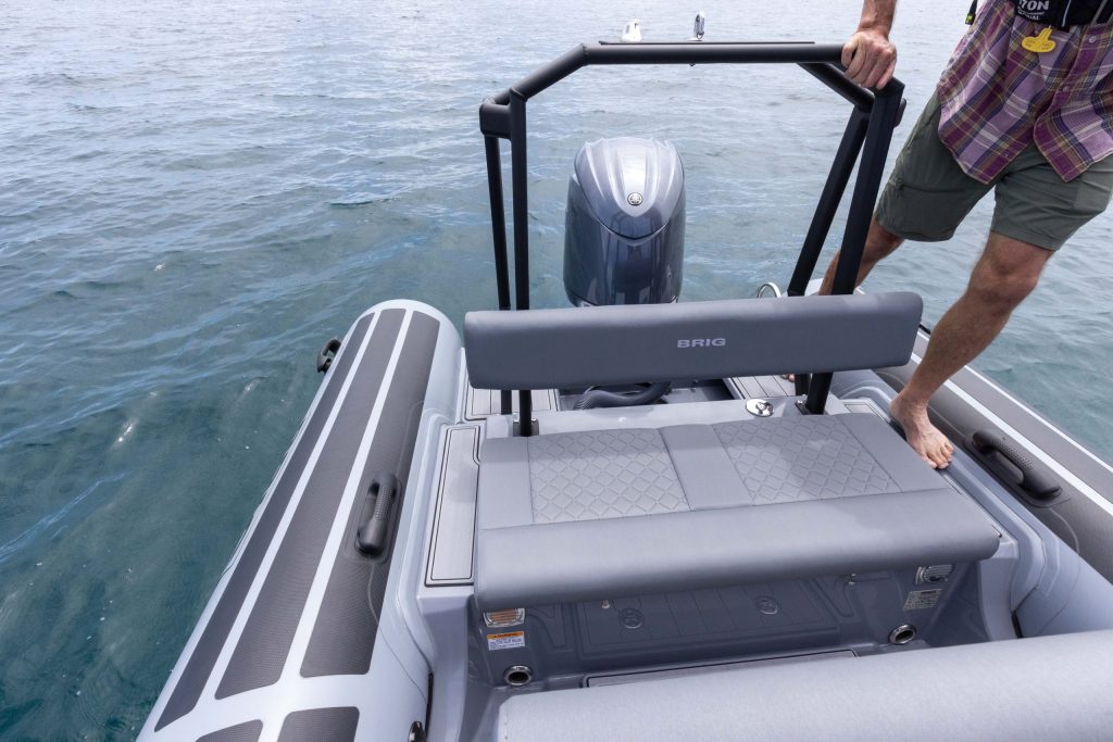Brig claim: “Our RIBs are hand-built and finished to exceptional standards, using only the finest material.” After poking my nose into every nook and cranny, I can confirm that they look very well put together. All the fibreglass moulded components are clean with no obvious imperfections; the Seadek decking alignment is precise, with all cutouts and spacings accurately cut; and the upholstery, made with SILVERTEX marine fabric, is well-made and accurately fits the spaces it is designed for. Plus all the seats have a debossed diamond pattern – this luxury detail is a nice touch, lifting the whole look and feel of the boat.