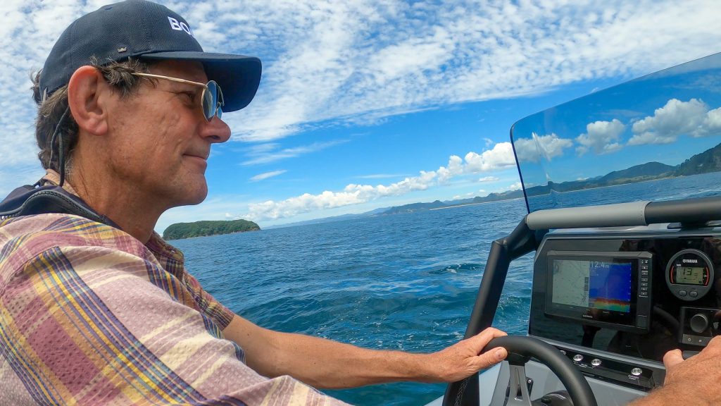 In Pauanui we met up with Peter from Family Boats. Brett backed the Navigator 20 into the water, the trailer backing up straight and true. The 20 slipped quietly into the water and it was time to see what she could do.