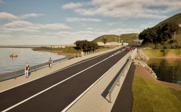 We flew off down the lake, riding flat and level, banking gently into turns, and enjoying the stunning scenery. In standard default mode the boat banks 8° in turns, which keeps the g-forces on the passengers under control; in sport mode, banking angle increases to 12°. In reality, the foiling turning circle is large, so turns are gentle affairs – just allow enough sea room. Turn too sharply and the computer will take over and land the vessel.
