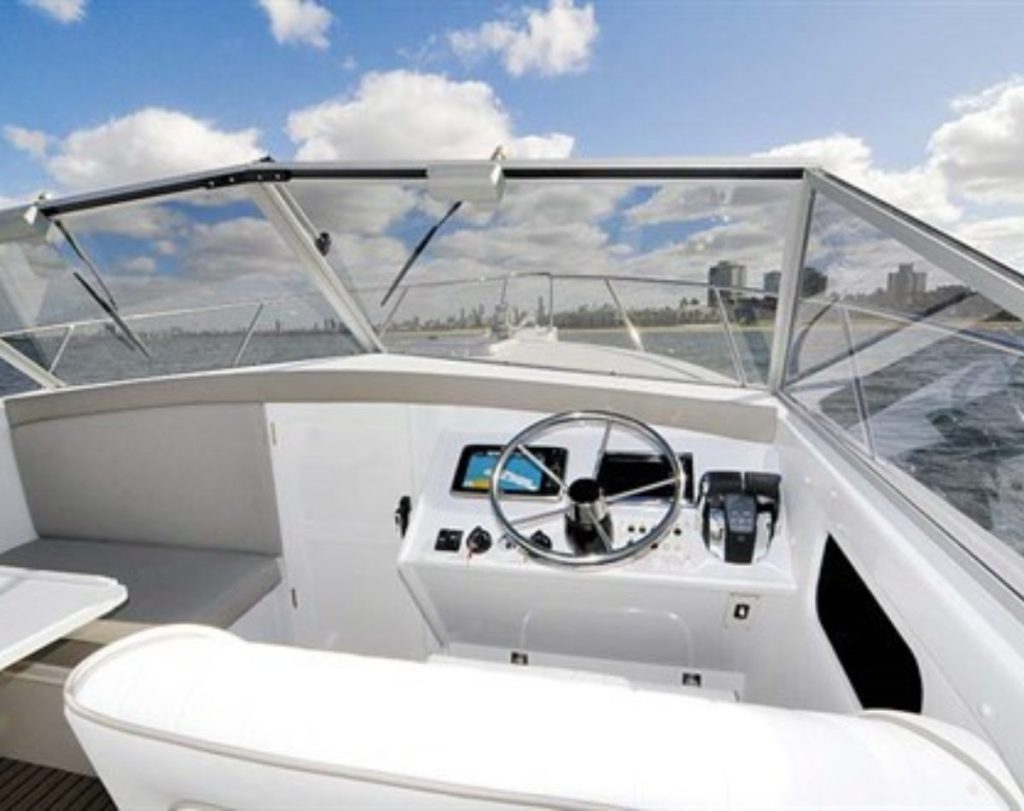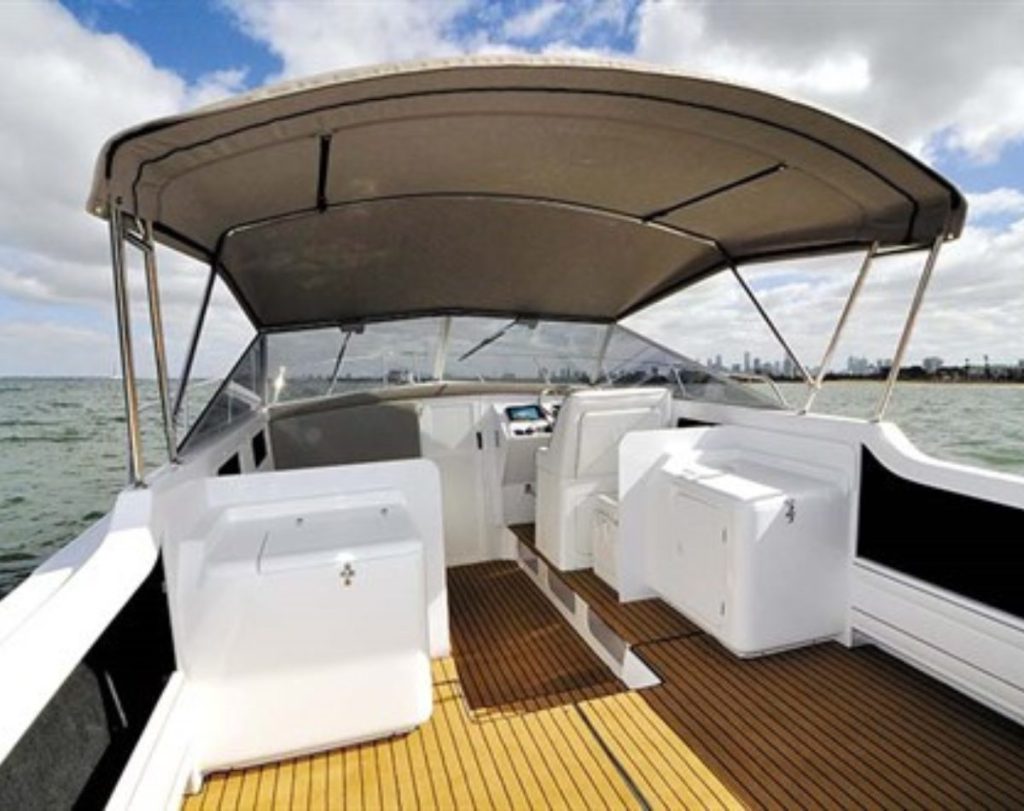 Port Phillip Bay turned on its usual conditions, with just under a metre of steep chop trying to slow us down – it didn’t! I tickled the reigns and she immediately galloped up to a speedy 23.7kts at 3200rpm punching directly into a head sea with five of us on board. The telltale as to how good the ride was is that we all remained comfortably seated. She didn’t buck at all as we rose to the plane and visibility remained almost constant throughout the whole event with the helm looking straight ahead through the big, strong safety glass windscreen that has always been a Caribbean trademark.