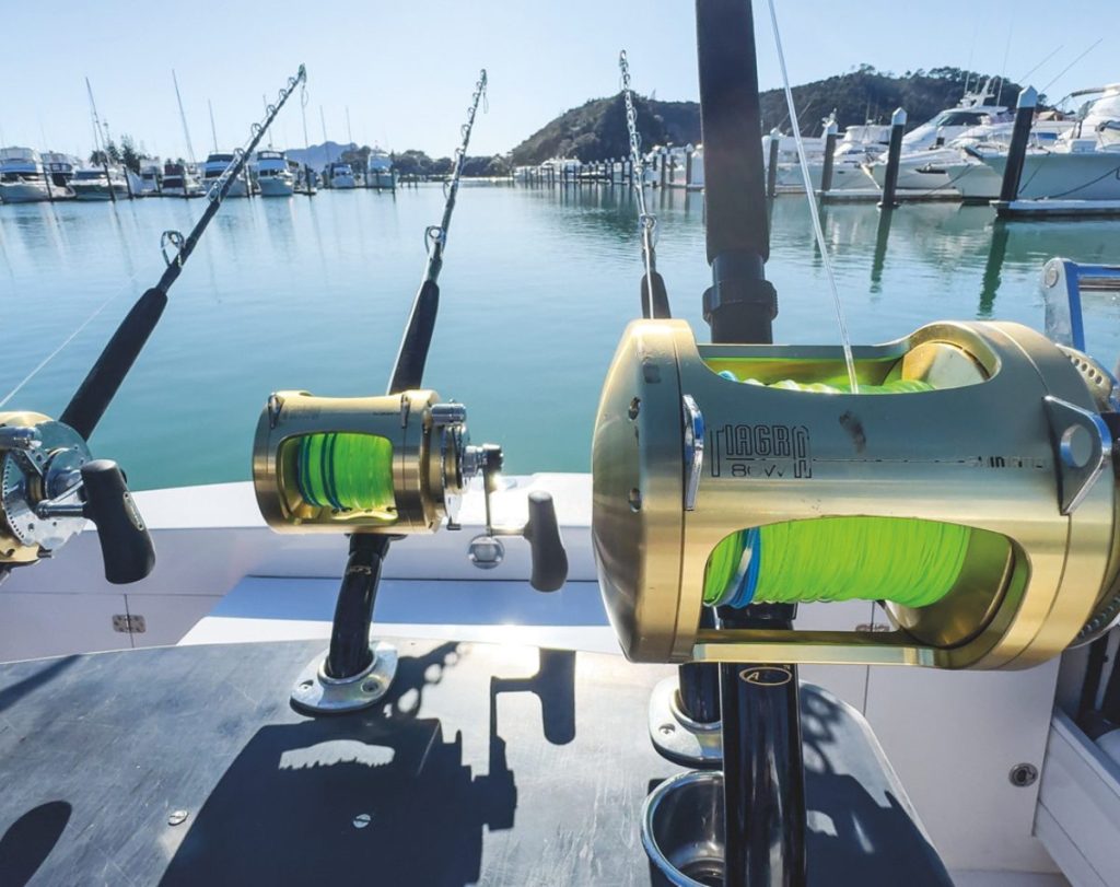 This boat also includes some features that are crucial for game fishing, such as an integrated autopilot. Long days trolling up and down are effortless thanks to this. Another great feature from Volvo is the low-speed mode. Most engines have a minimum speed of several knots, which is what happens when the engine is just idling in gear. Lower speeds are only possible by going in and out of gear manually, with resultant wear and tear on transmission components. However, the new Volvo sternleg has the DPI electric-over-hydraulic clutch, which allows consistent half-knot speed increments, starting from just half a knot. Of course, the cockpit of the boat has been suitably set up for game fishing, with long carbon-fibre game poles and American-made rotating rod holders set into the gunwales. The boat also reverses well at up to seven knots, so chasing down a fish for tag-and-release is easy.