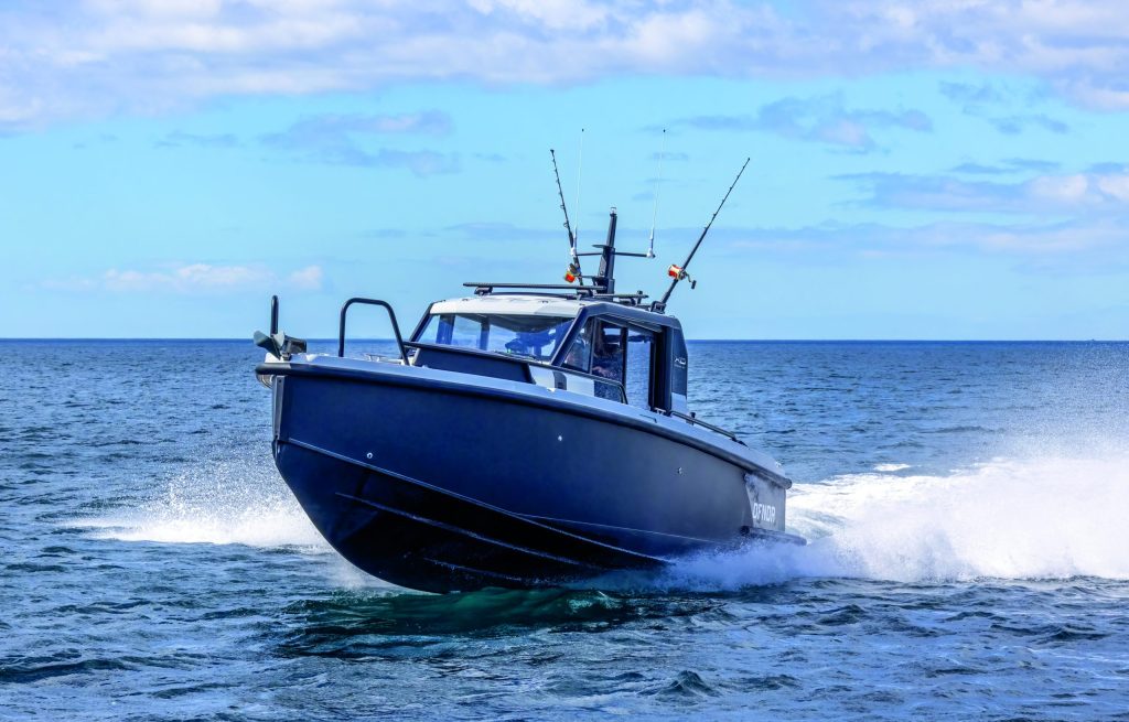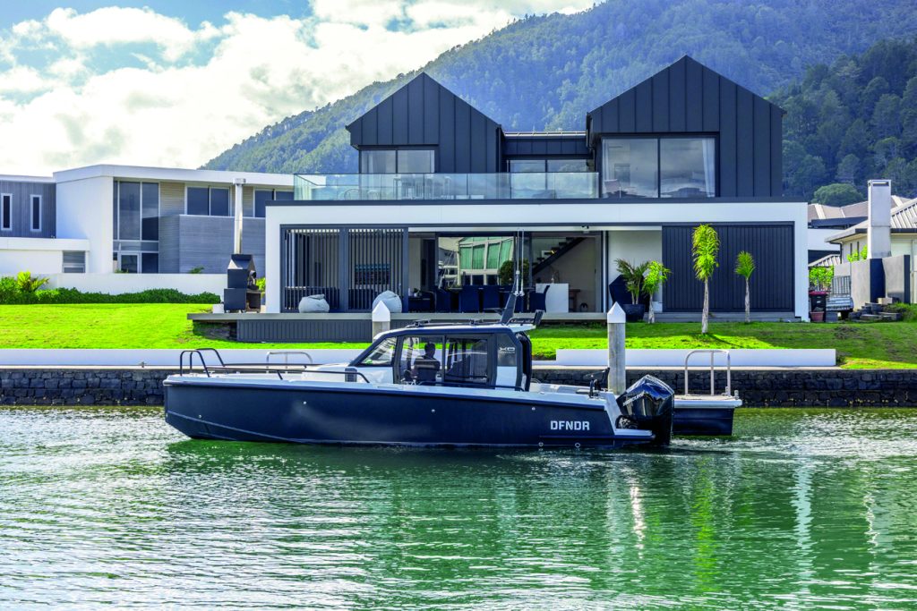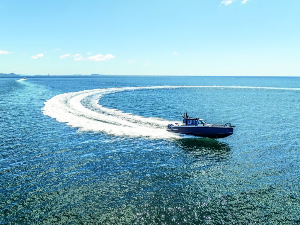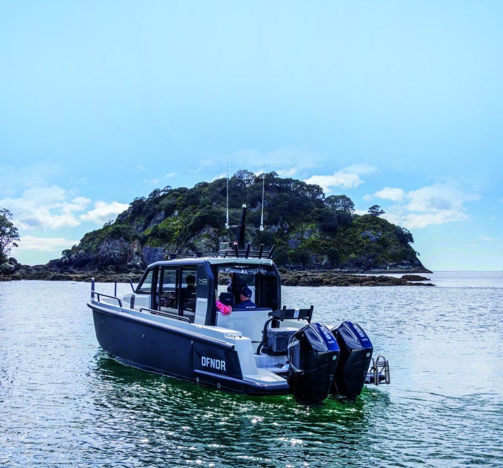 Described as an adventure boat in its home market and also hailed as a commuter vessel, the Finnish-designed, Finnish-Polish-built XO Crossover DFNDR 9 stands out as a compelling blend of rugged practicality and modern design. It won Adventure Boat of the Year, Motor Boats Awards, Dusseldorf Boot 2023. With its military-grade 5083 aluminium hull, carbon-look wrap, and fibreglass topsides and decks, this vessel is completely at home in New Zealand’s often challenging boating environment.