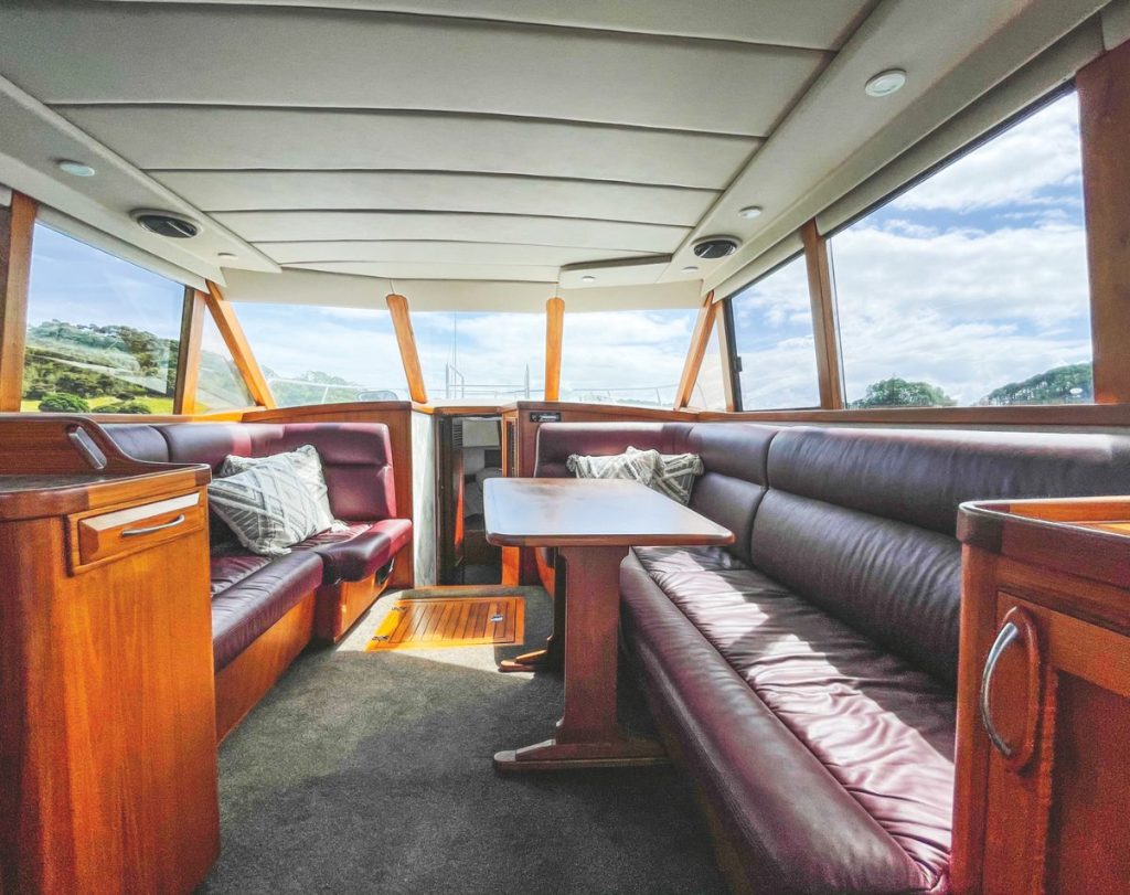 Bartlett began with a clean sheet of paper, entirely gutting the dated saloon and galley to make better use of the available space. Central to his thinking was eliminating the traditional saloon helm station. The boat is now controlled from the flybridge only – where the views are better.