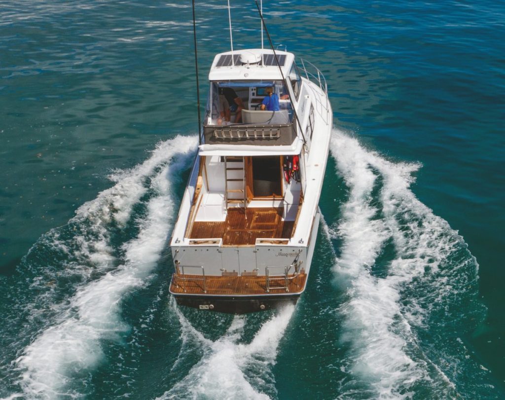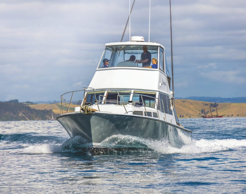 Masquerade now carries more modern outriggers and while the Harbrows have yet to land a marlin, the large door in the transom is there – ready, waiting and welcoming. Until then, they’re happy to savour the old dame’s charms, cruising the coastline with the family at a leisurely – but always elegant – pace.