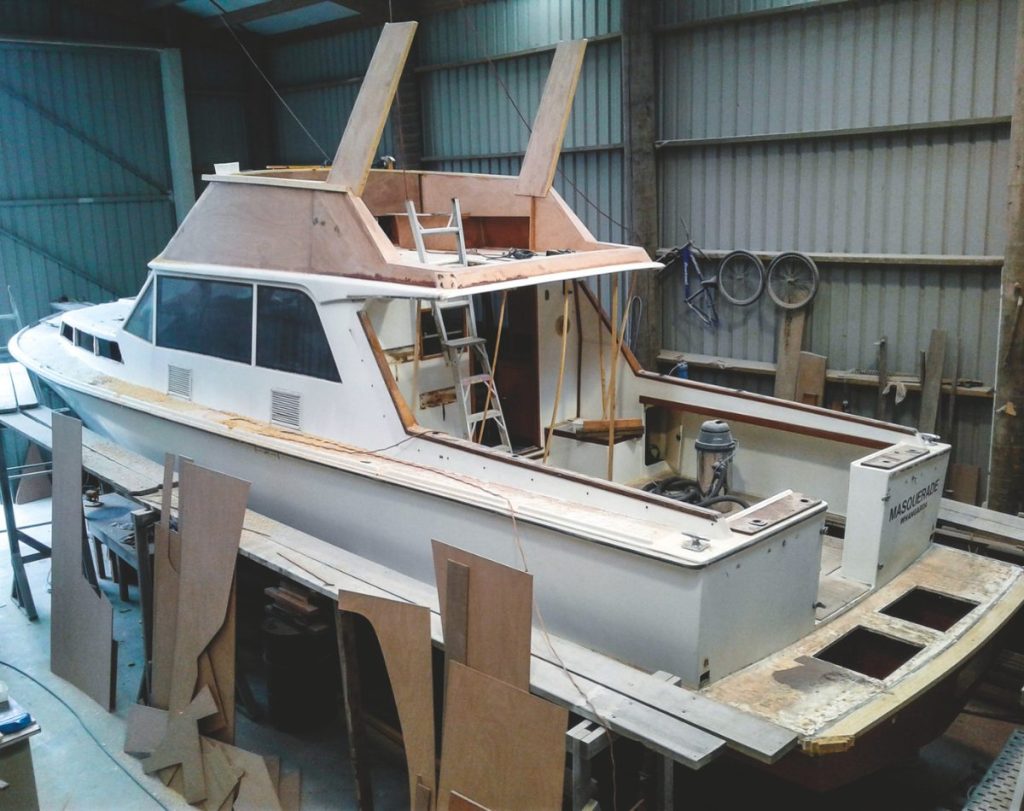“But there was a silver lining,” says Bartlett. “Like many New Zealand-built fibreglass boats of her vintage, Masquerade suffered from severe osmosis. We planed a 2mm layer from her hull and, because the boat was in the shed for around five months – the hull was able to dry out really well before we reapplied the new layers.”