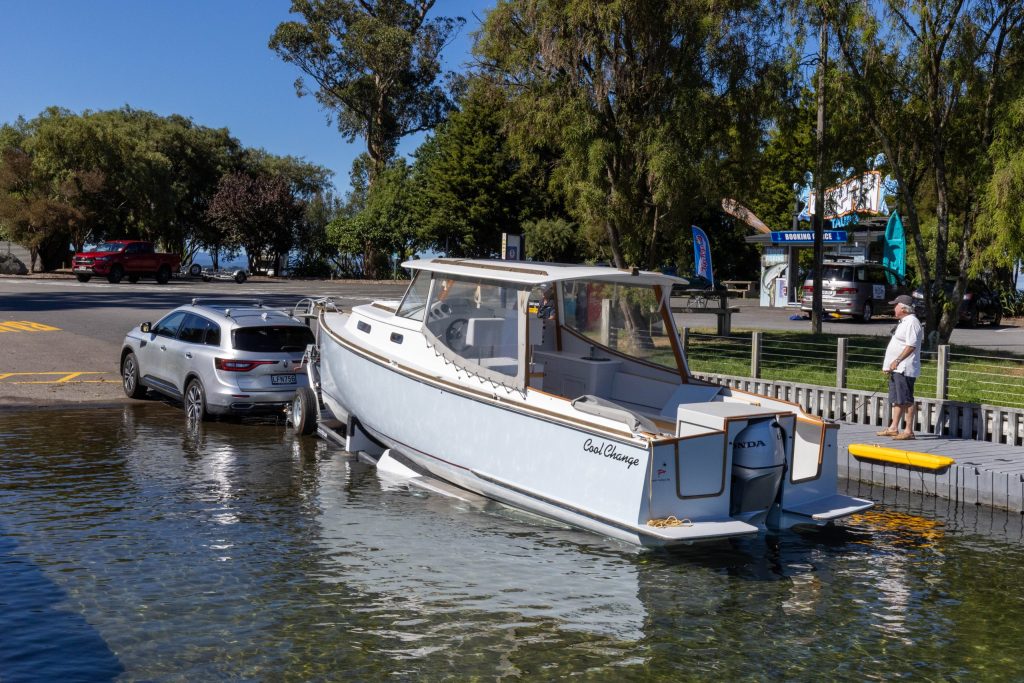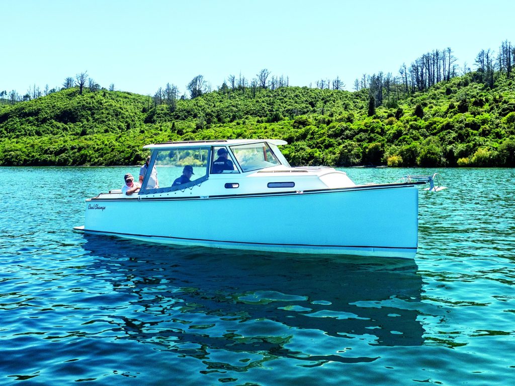 Roger Hill and the Boating NZ crew met up with Peter Parvin and Cool Change in Taupo. Sadly, for Parvin – who is recovering from shoulder surgery – the boat has become more than he can manage, especially getting it in and out of his tight driveway at home, for which he requires a cumbersome winch system. “It’s just become too much of an effort to get the boat in and out, so I’m not using it enough. It’s time for someone else to enjoy it,” he explains. Cool Change is up for sale on a Taupo boatyard.