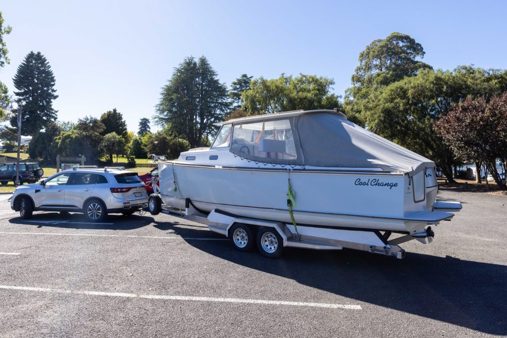 First impressions are that the boat looks quite large on its aluminium tandem-axle trailer, but Parvin happily tows it behind a modest-sized SUV. The trailer has override brakes on one axle.