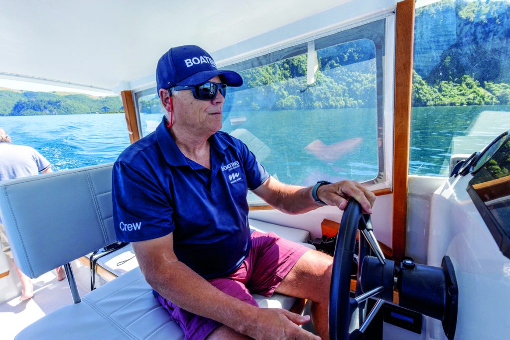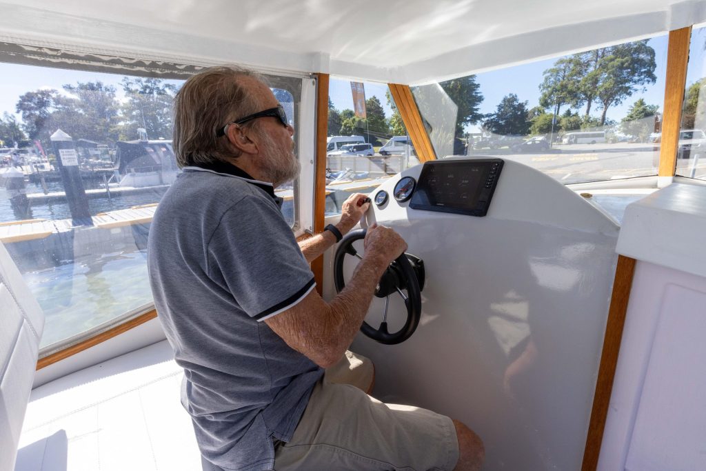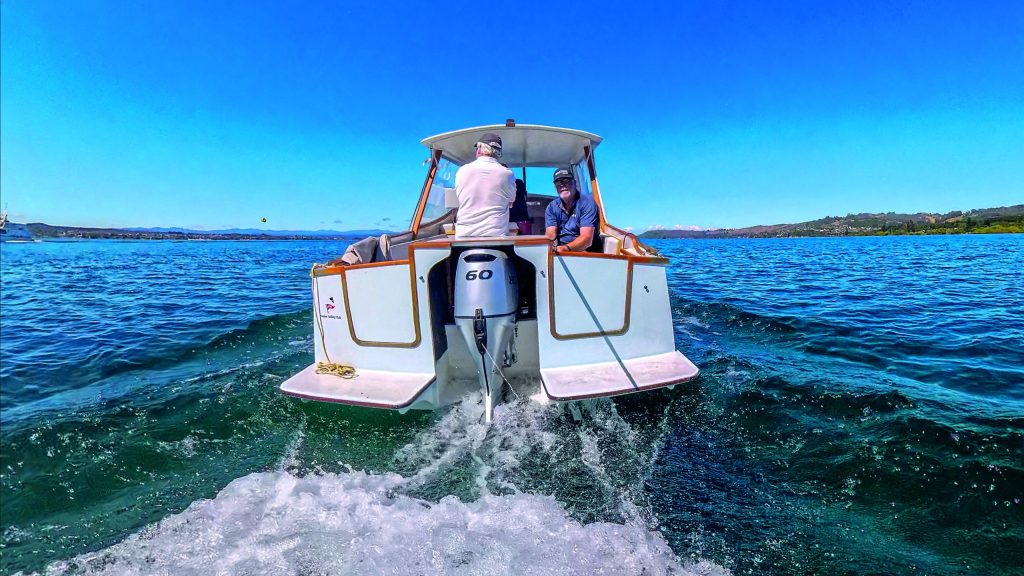 With the boat floated off the trailer bunks, we stepped aboard and headed out onto the Great Lake. Once clear of the five-knot zone, Peter got the boat up to cruising speed, a very comfortable 12 knots at 4,000rpm. I immediately noticed how quiet it was, with noise from the Honda outboard nestled in its box at the transom quite muted, as was noise from the hull’s passage through the water. At cruising speed the fuel burn was around six litres per hour, and Hill estimates the range on a full tank of 91 octane petrol at around 150 nautical miles.
