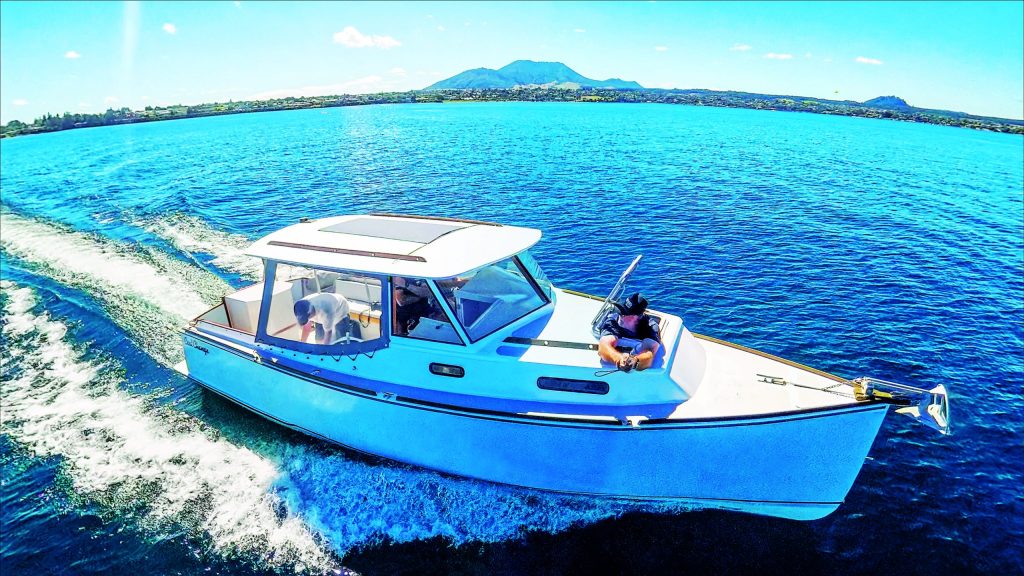 Seeing the plans again, Peter decided the boat would suit him quite nicely: seven and a half metres in length, simple construction he could undertake himself in the garage at home, modest outboard power, a tidy turn of speed, and around 150 nautical miles of cruising range. He thought it would be just the ticket for a bit of fishing out of Napier, and he quite liked the look of it as well, with its nod to the classic styling of yesteryear.