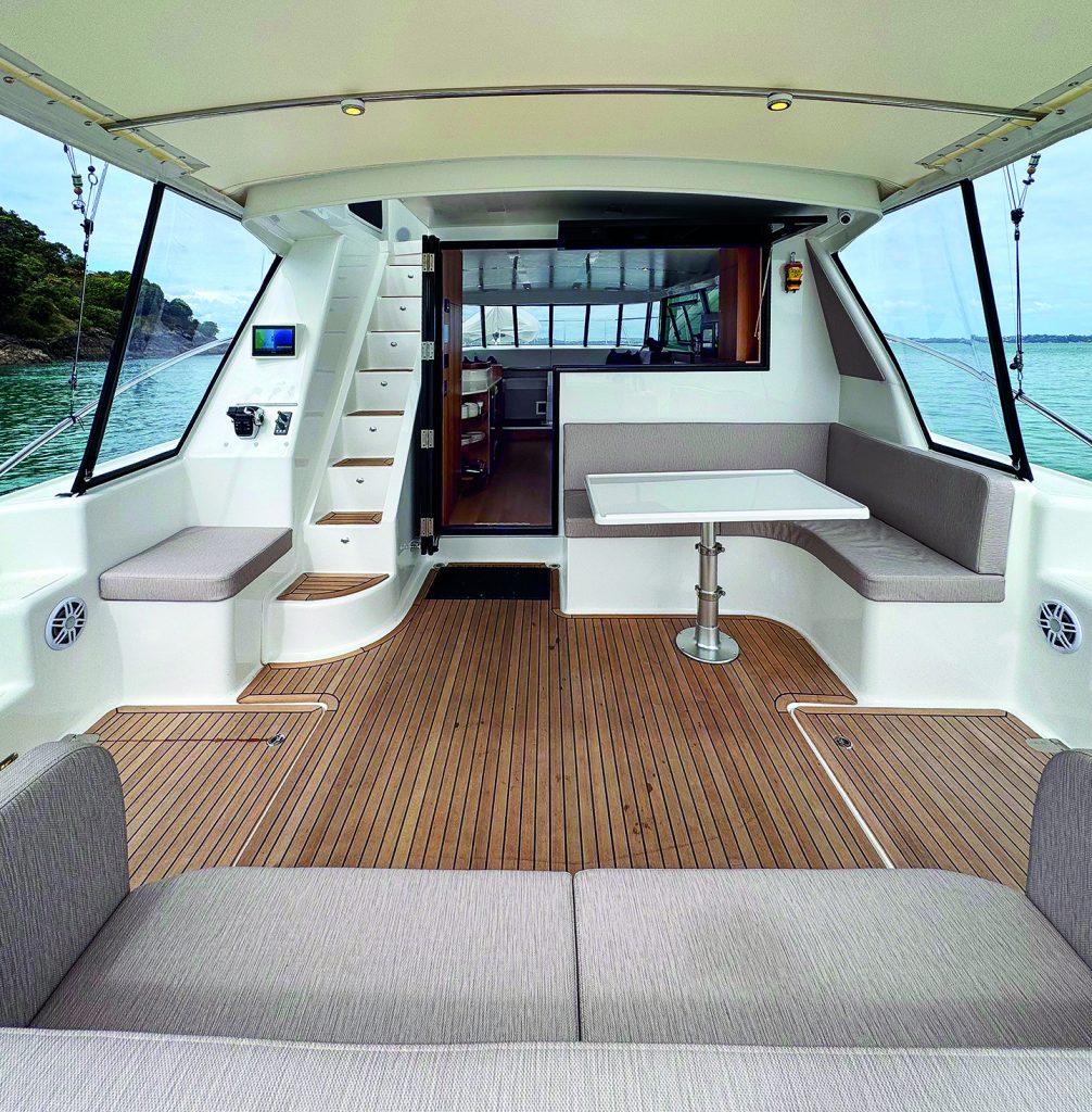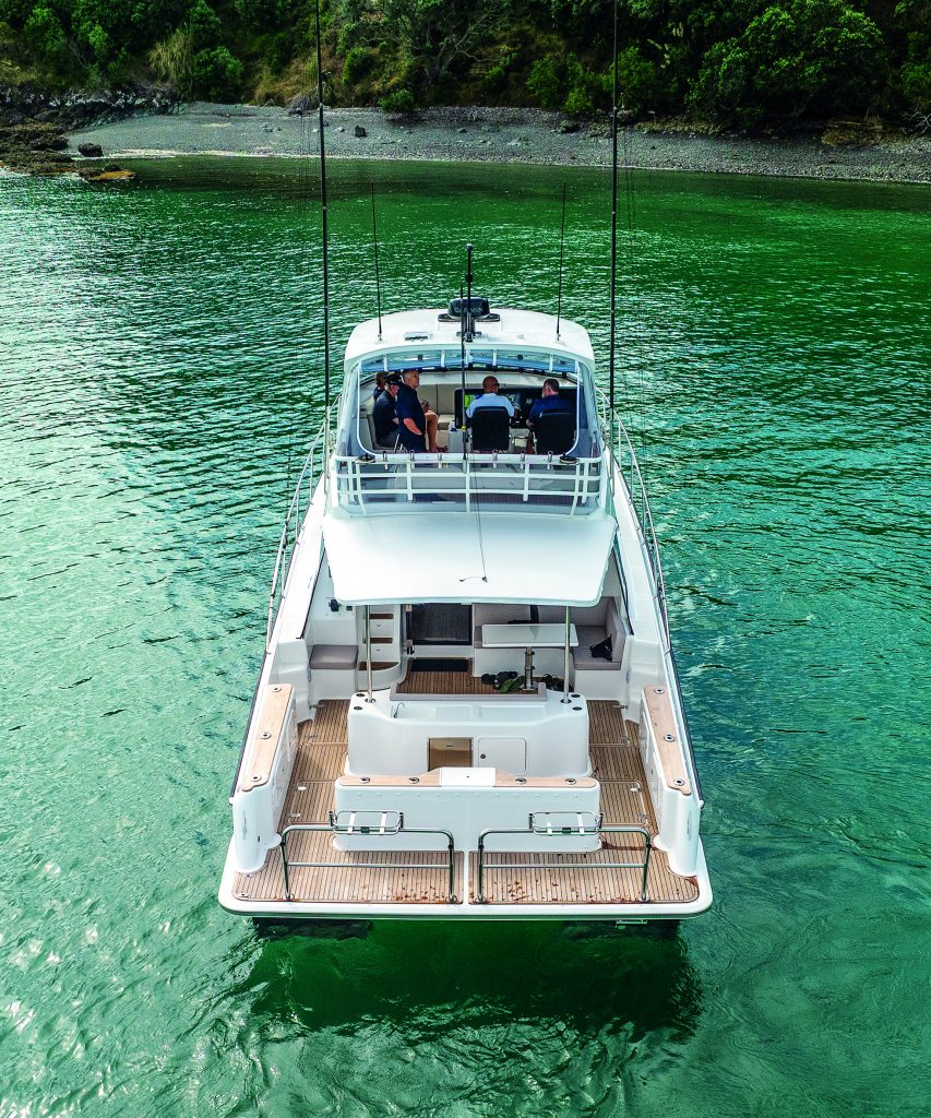 Catfish adds an Alan Wright-designed flybridge to the existing sedan model, along with other modifications. Sedan-style motor yachts are popular in New Zealand, but this boat is destined for Australia –the Whitsunday Islands in northern Queensland – where its main role will be game fishing, along with some family cruising. Her owner is an accomplished tournament angler, and his input is clearly evident in the boat’s sportfishing setup.