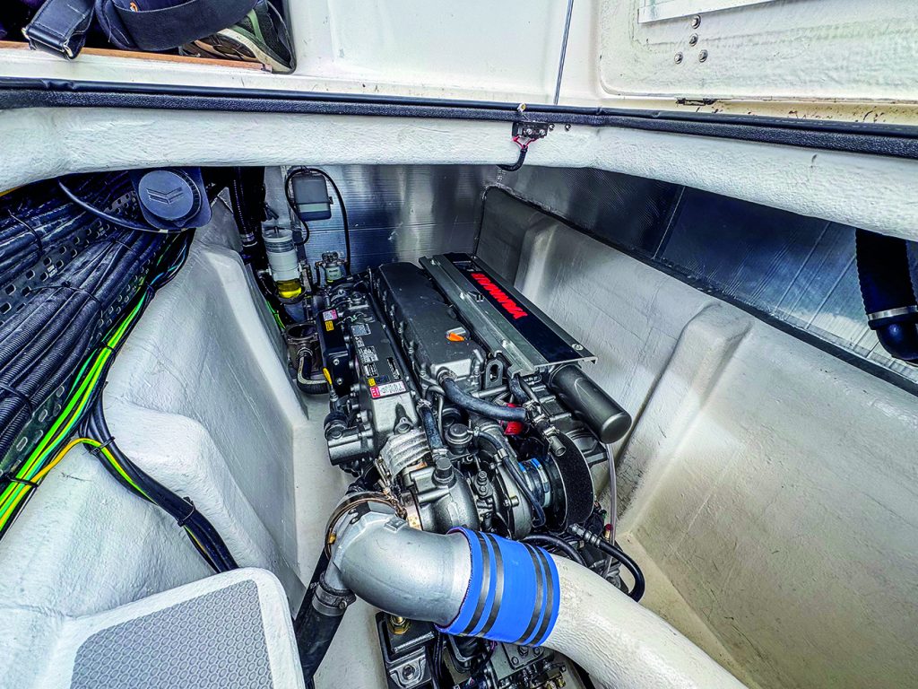 Access to the engines, ship’s systems and associated machinery is excellent. The Yanmars are compact power units, so they drop in through the deck hatches, there’s ample space around them in the engine rooms, and their installation has produced a vessel that’s very quiet when underway, even standing in the cockpit. Additional deck hatches aft access the genset, hot water tank and freshwater filtration system on the port side, with general storage in the starboard hull.