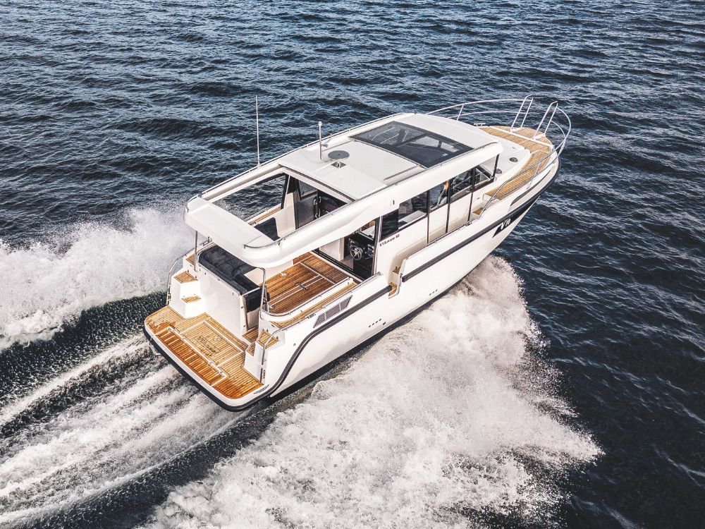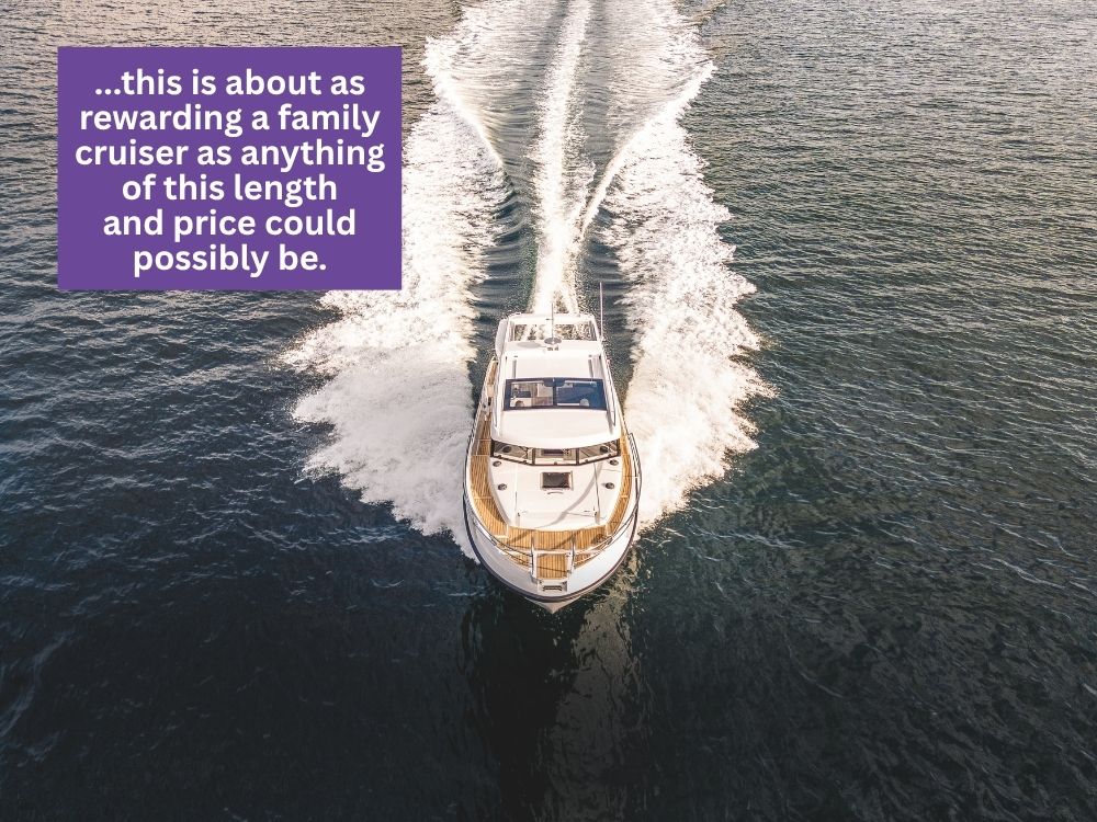 This is a supremely effective family cruiser with a three-cabin layout that’s extraordinary. It’s beautifully designed, nicely built, very well specced, and full of ideas that only come from years of firsthand experience on the water. As mentioned, it would be good to see some cup holders machined into the tray between the foredeck directors’ chairs. As long as you’re not dead-set on the pace, handling vigour and style of a planing boat, this is about as rewarding a family cruiser as anything of this length and price could possibly be. Its single engine, shaft-drive configuration means it’s economical to run and maintain. Designed for a Scandinavian climate with features like a reverse screen wheelhouse and easy-to-enclose cockpit, it’s well able to deal with New Zealand’s sometimes inclement weather.