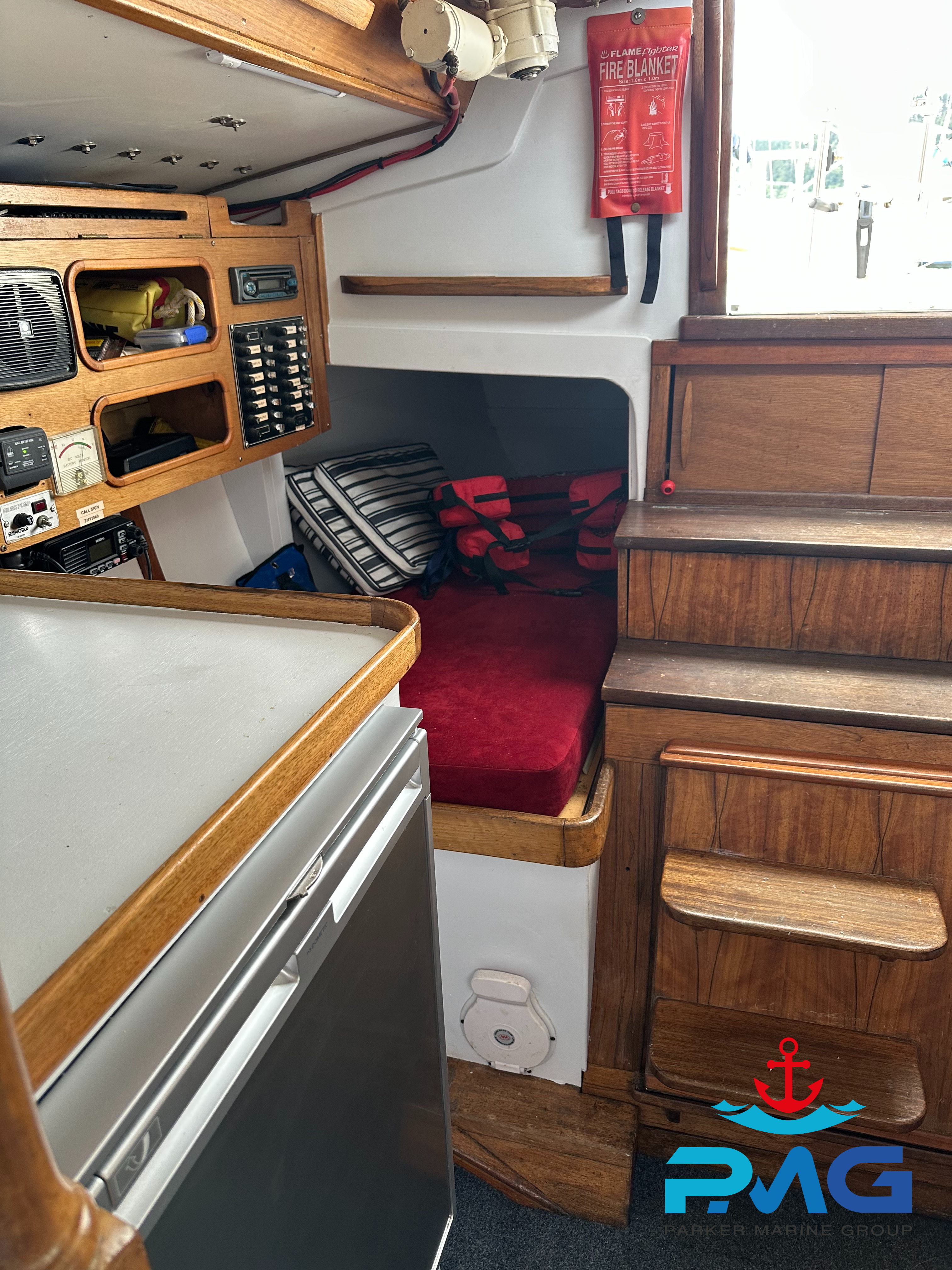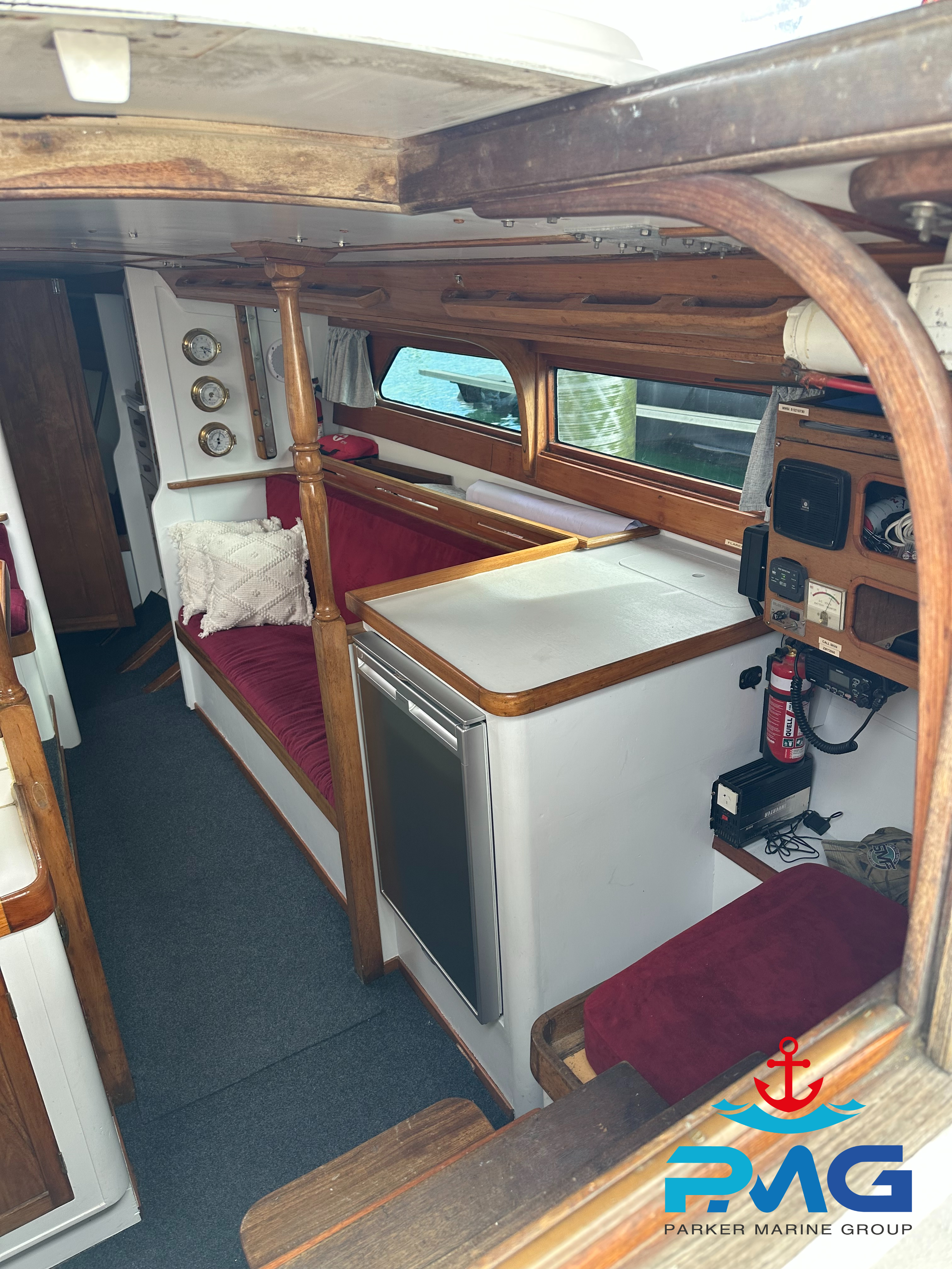 Her spacious cockpit and ergonomic deck layout are designed for easy handling, whether you're racing with a full crew or cruising short-handed. Below deck, the Raven 38 offers a warm, inviting interior with rich wood finishes, generous natural light, and clever use of space. The saloon is ideal for entertaining or relaxing after a day on the water, while the well-appointed galley, private cabins, and ample storage reflect a thoughtful, liveaboard-ready design.