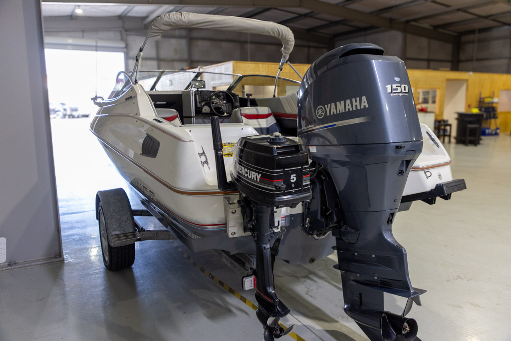 Comes standard with bow rails, anchor, Aux bracket, Underfloor fuel tank, Navigation lights, Panasonic stereo and a day canopy to keep the weather out. The cuddy cabin offers storage or basic overnight accommodation. This package is a great option for families looking to make memorable adventures on the water.Also comes with a Mercury 5hp 2 stroke Auxiliary which is great for trawling and fishing adventures.