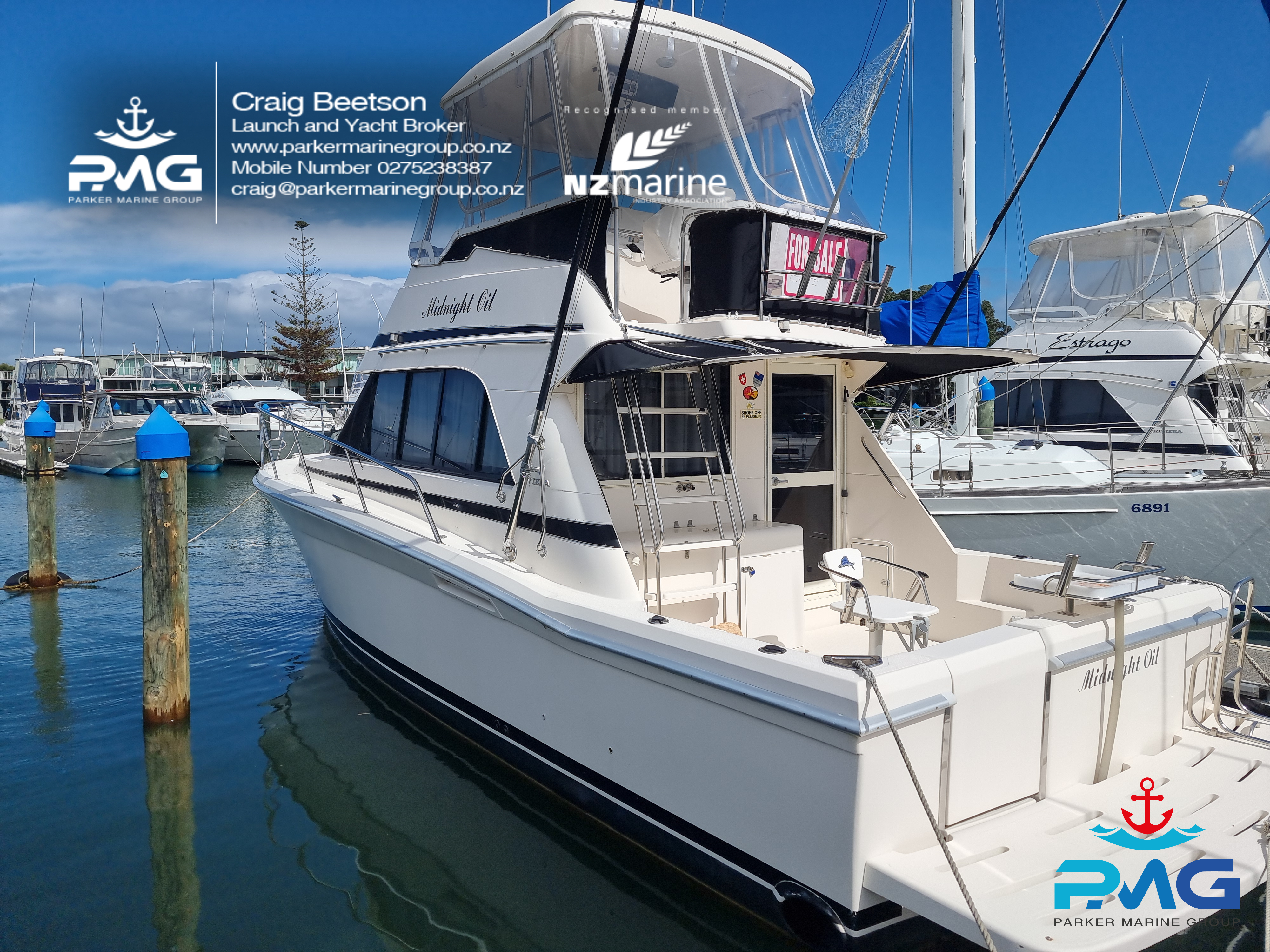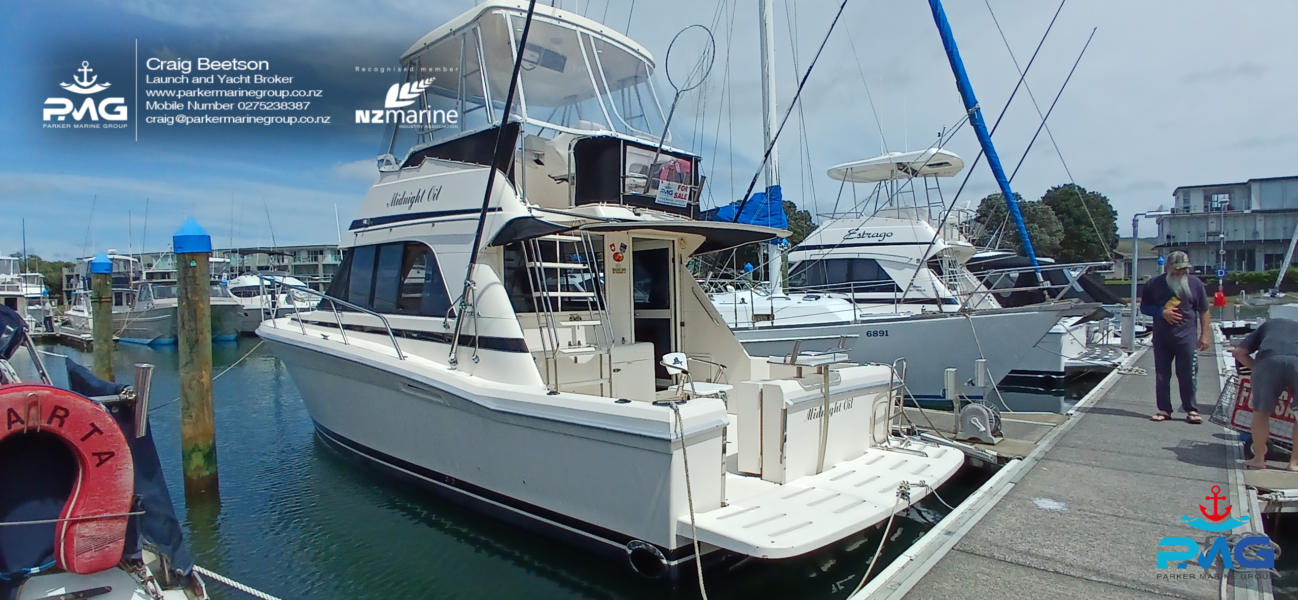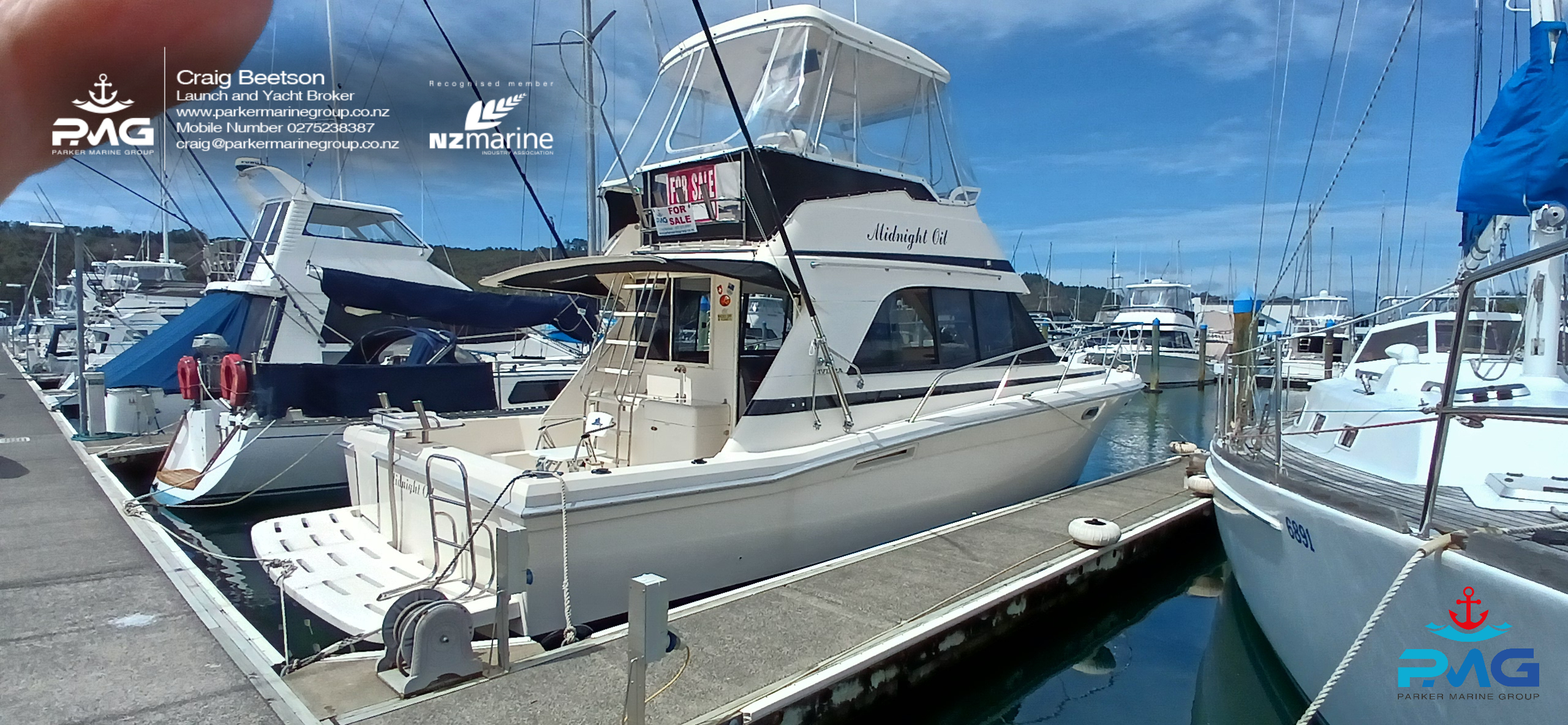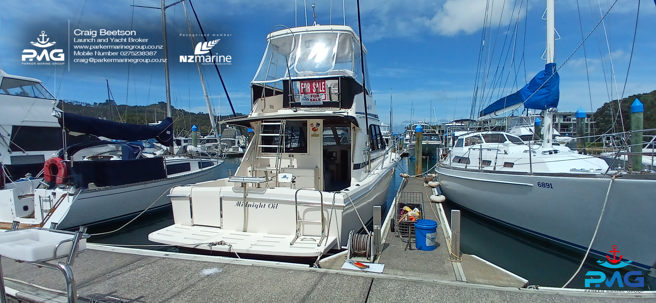 Lovingly maintained, stylishly aged, and ready to cruise or fish till dawn. Midnight Oil isn’t just a boat — she’s a mood, a memory, and a promise of adventure. Crafted by Riviera in 1994, she embodies the golden era of New Zealand boating — where strength, style, and seaworthiness came standard.