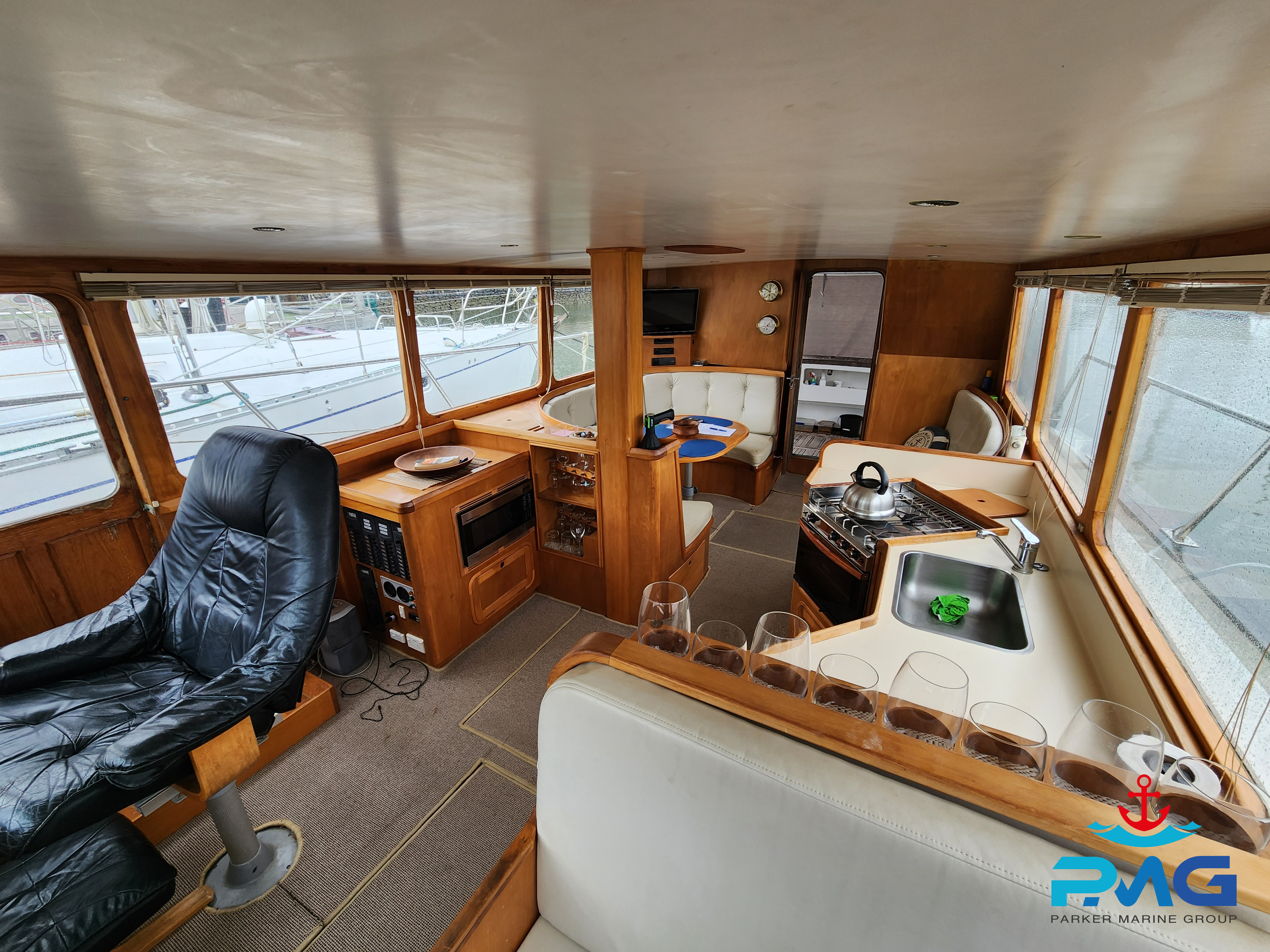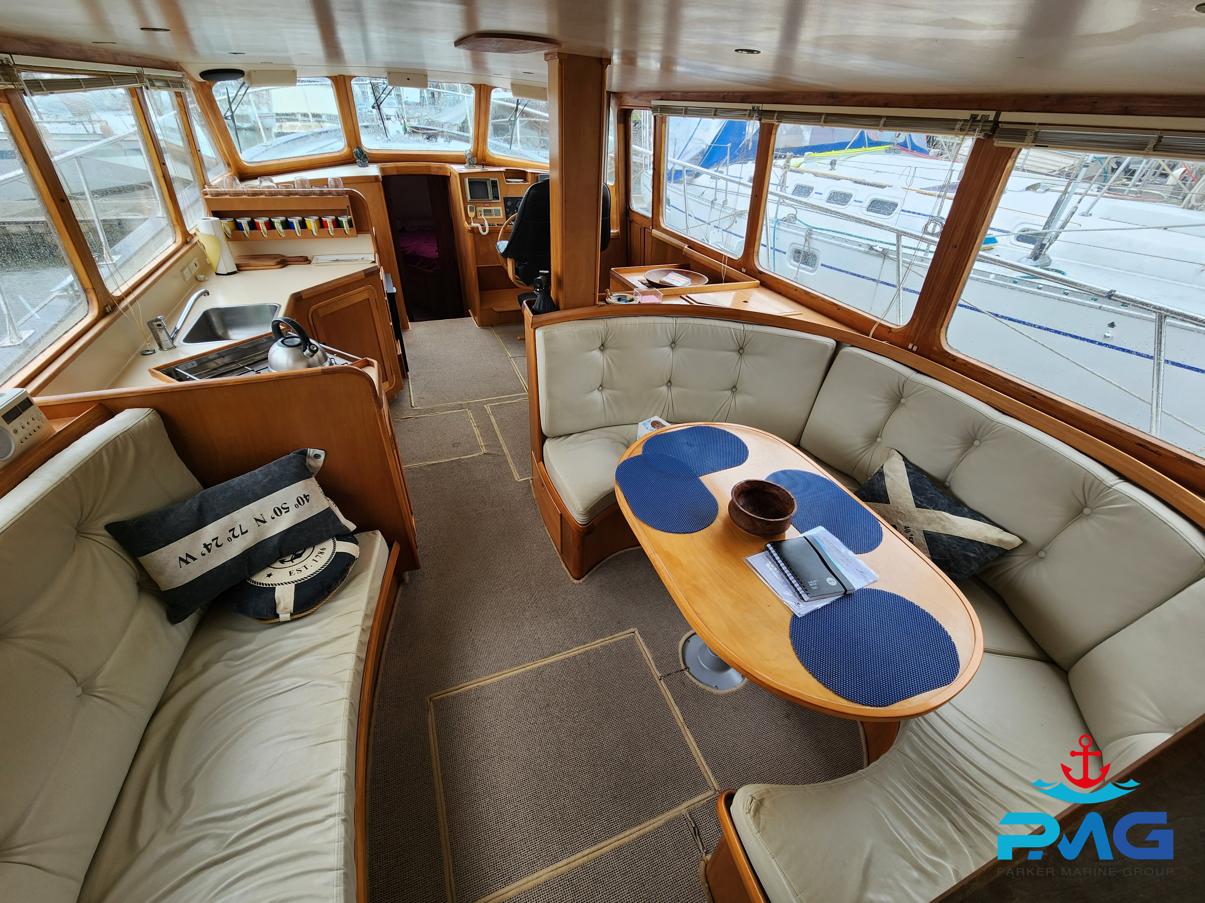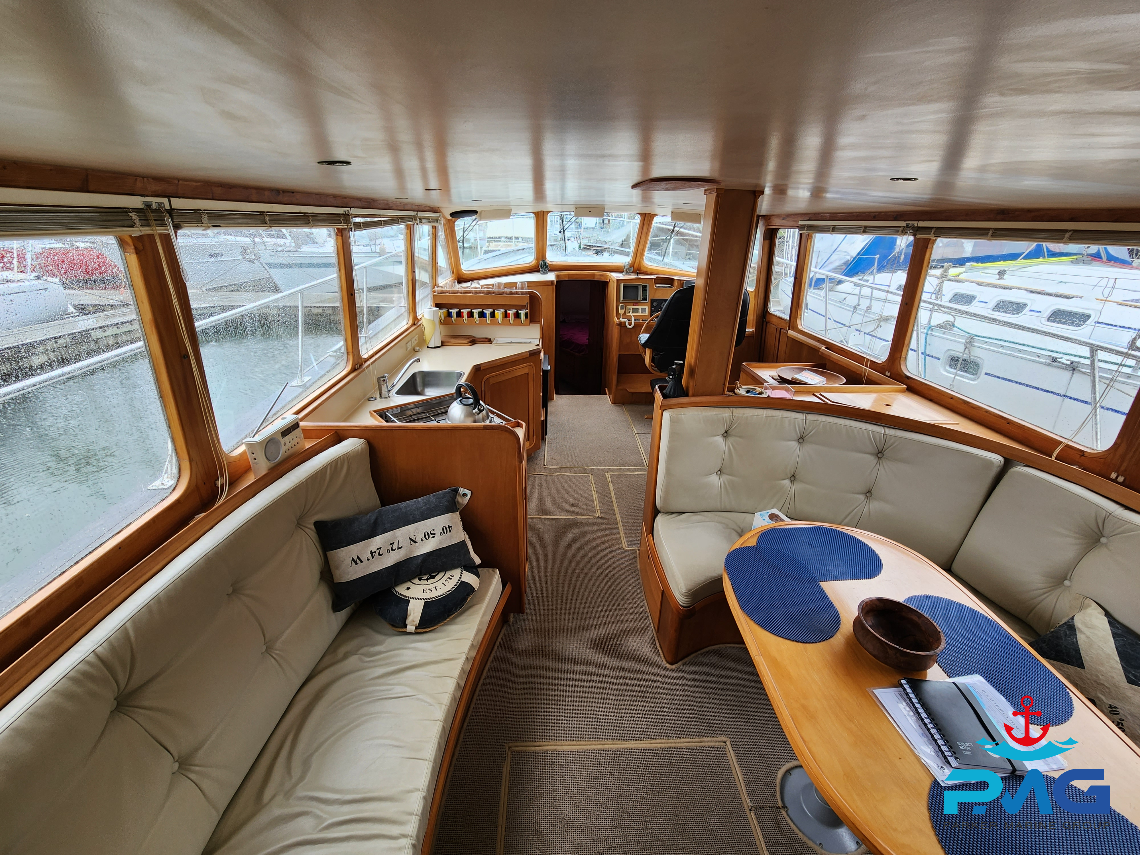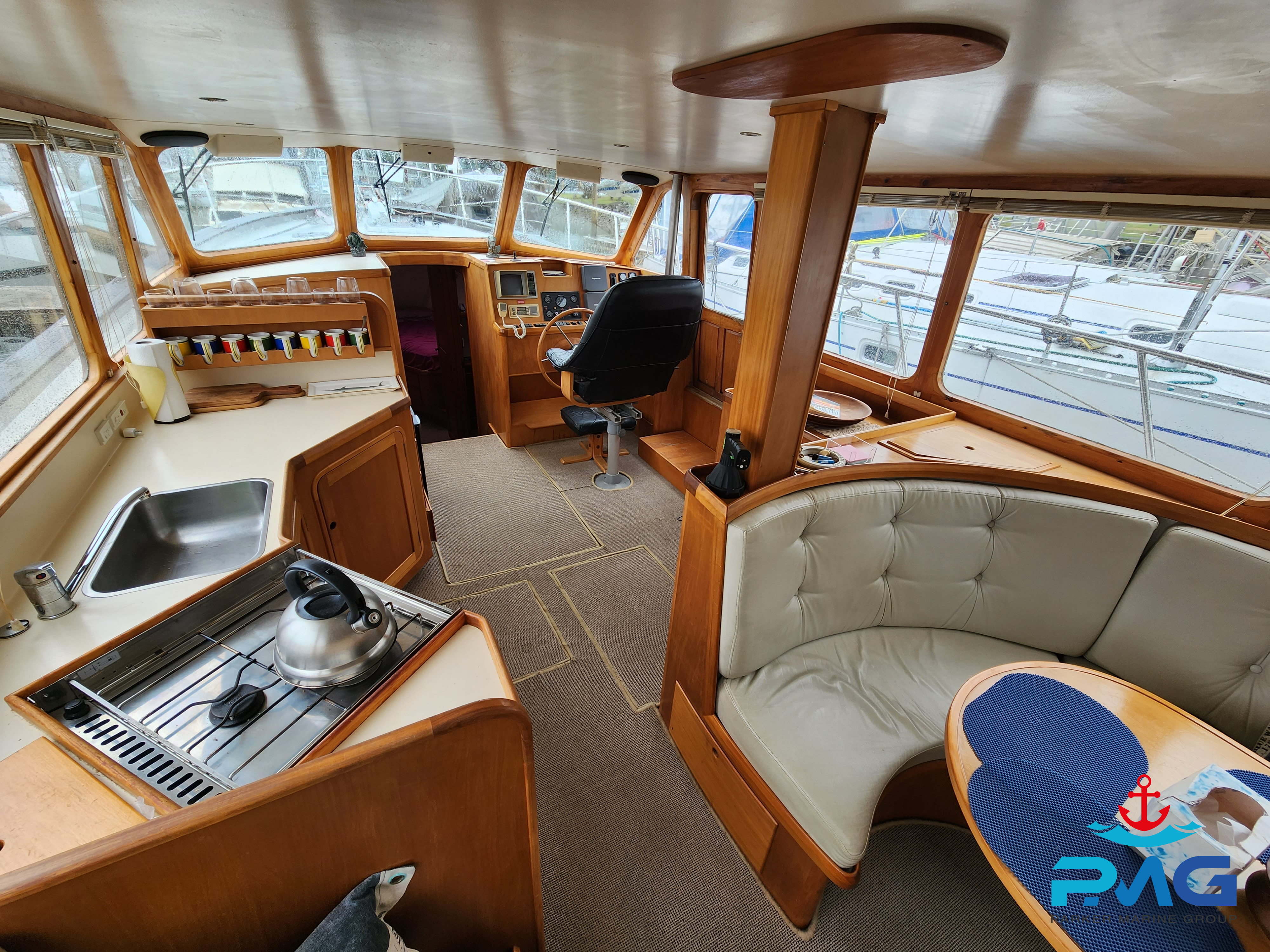 This 1996 Pelin Crusader is a stunning example of this Frank Pelin design, and if you’re looking for a large volume vessel, then she really is worth you viewing her. Powered by a very reliable and meticulously serviced 320hp 3208 Cat diesel engine, she cruises at 9 knots all day long. She sleeps 6 comfortably and would make a perfect liveaboard or coastal cruiser.