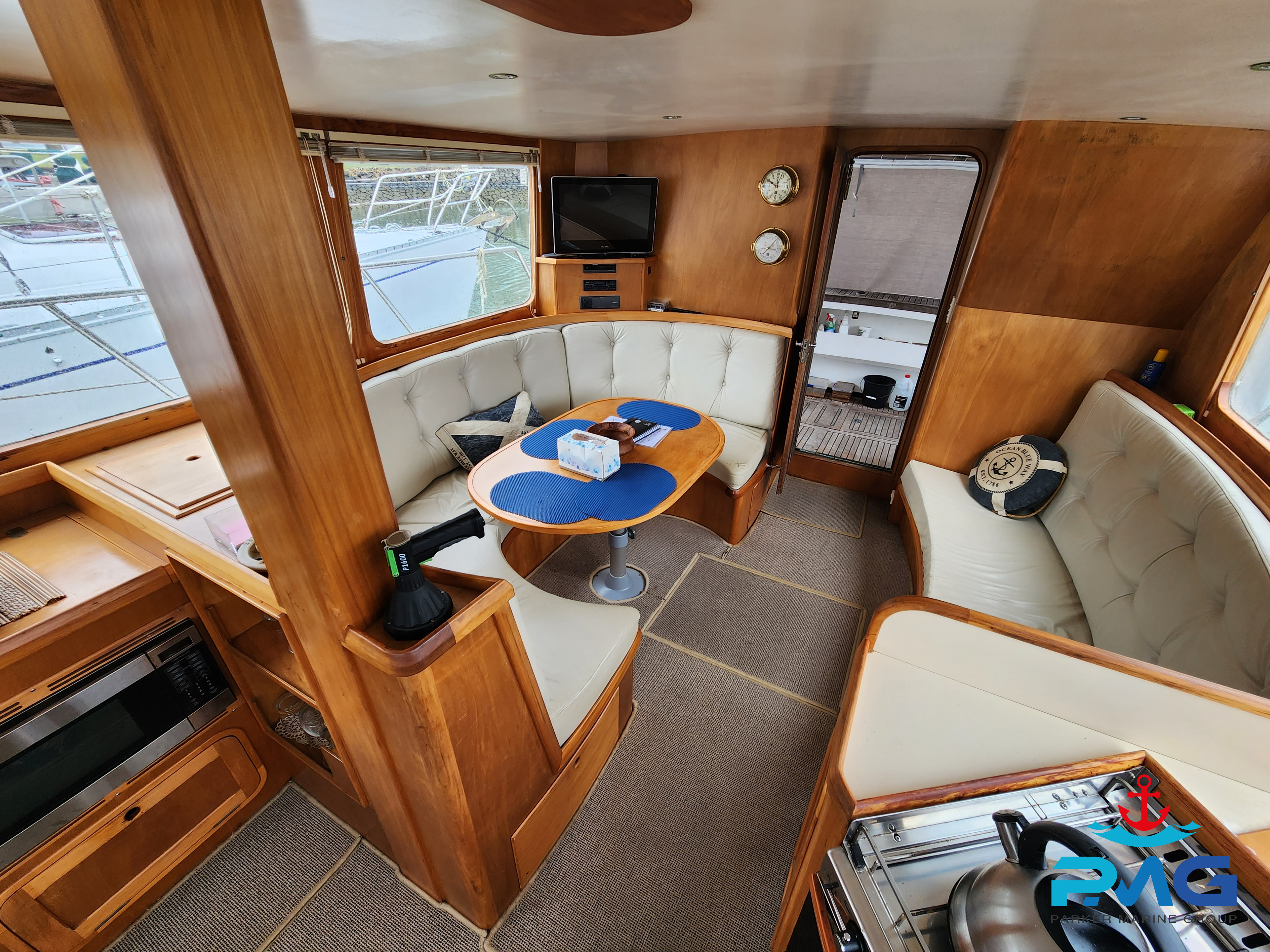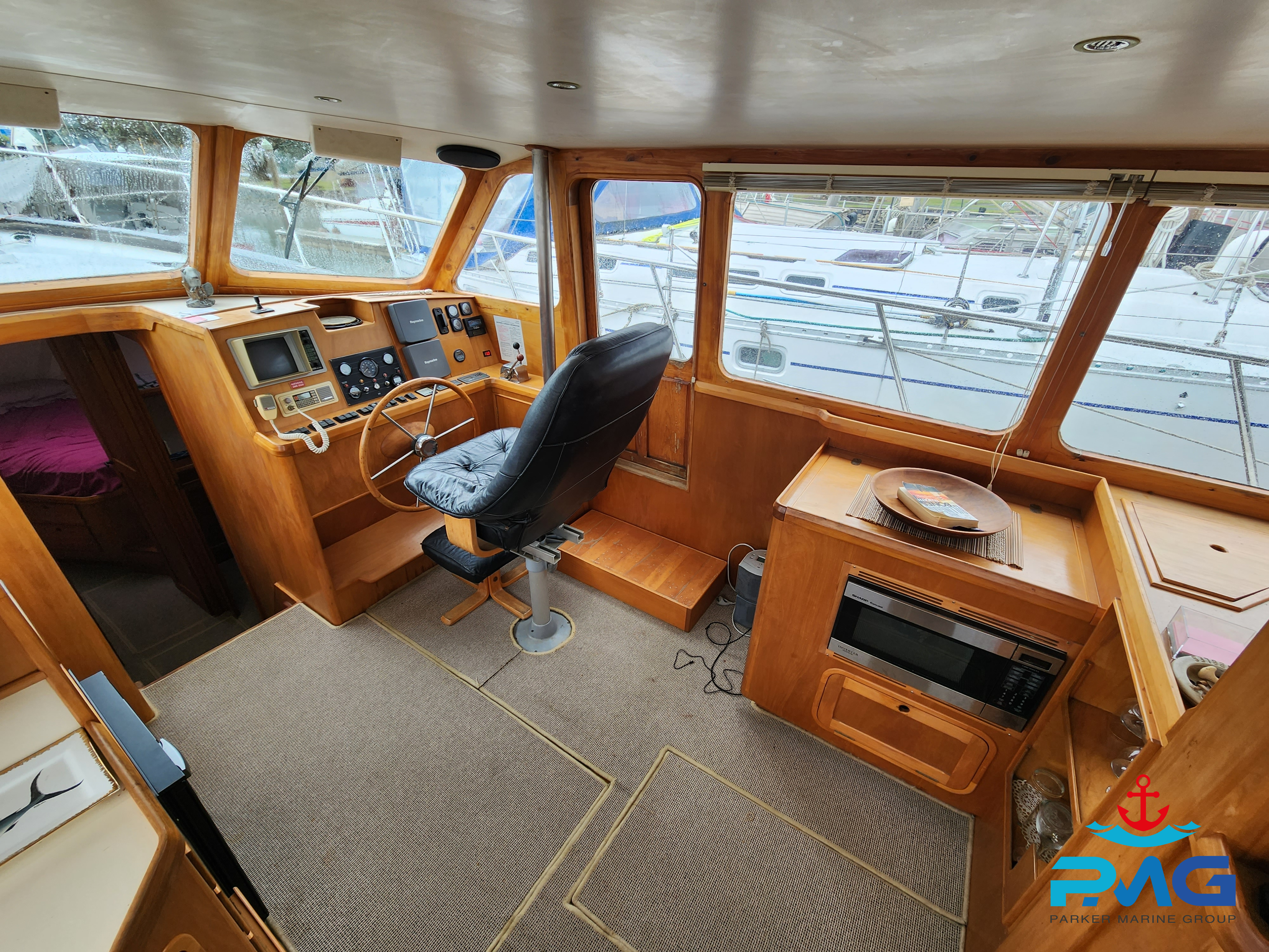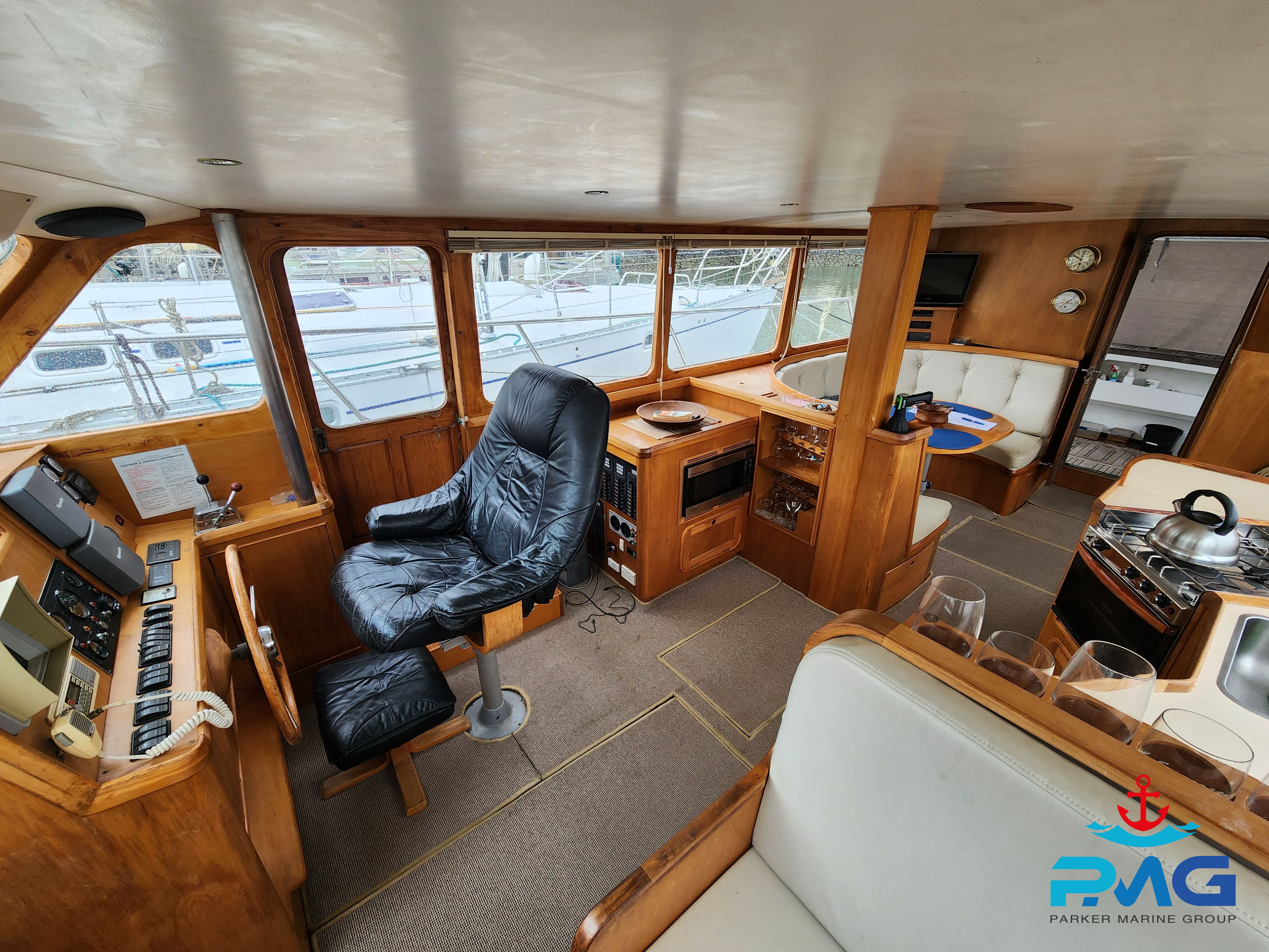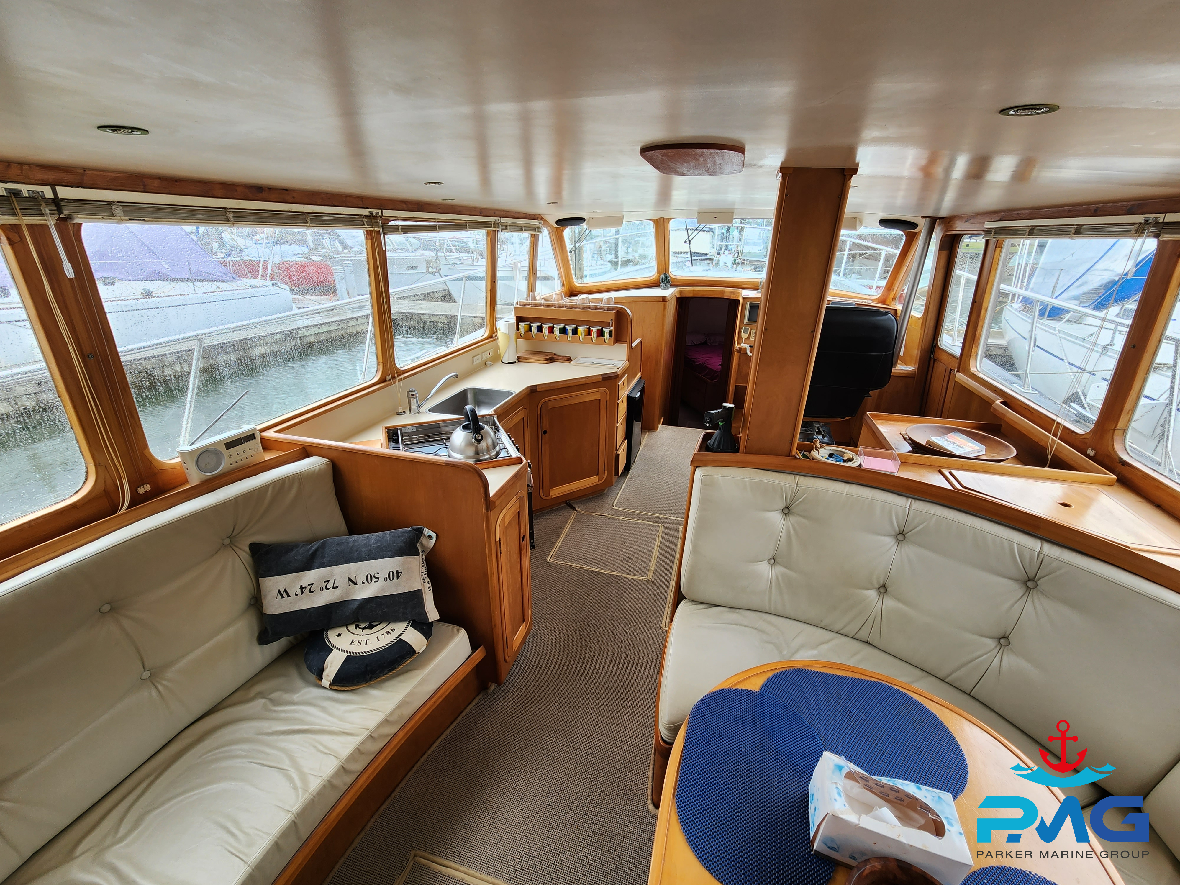 This 1996 Pelin Crusader is a stunning example of this Frank Pelin design, and if you’re looking for a large volume vessel, then she really is worth you viewing her. Powered by a very reliable and meticulously serviced 320hp 3208 Cat diesel engine, she cruises at 9 knots all day long. She sleeps 6 comfortably and would make a perfect liveaboard or coastal cruiser.