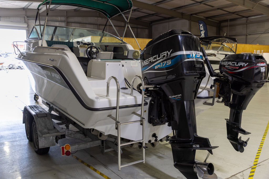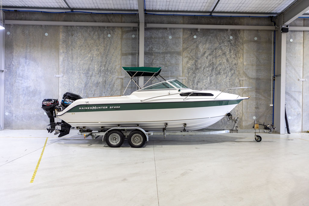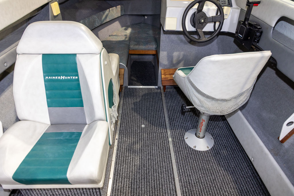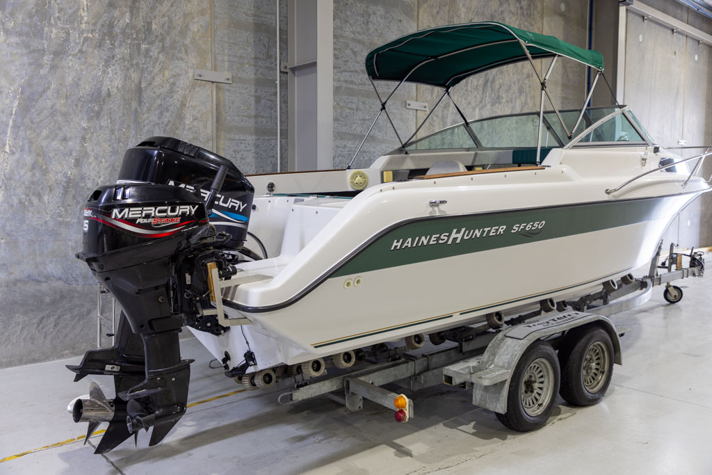 #990871999 Haines Hunter SF650 – Mercury 175hp | Aux 15hp | Proven Offshore PerformerStandard Features:AnchorAuxiliary BracketBilge PumpBow RailsCanopyGrab RailsNavigation LightsRoad CoverRod HoldersRod RacksSki PoleUnder-Floor Fuel TankSpecial Features:Lowrance Hook Reveal Fish FinderUniden VHF RadioA classic, capable Haines Hunter that’s ready for fishing missions, family outings, and coastal cruising.The 1999 Haines Hunter SF650 is a highly respected, deep-vee hull renowned for its soft ride, stability, and offshore capability. Larger and more powerful than its smaller siblings, the SF650 is an excellent choice for boaties wanting confidence in tougher conditions while still enjoying family-friendly versatility.Powered by a Mercury 175hp two-stroke outboard with just 121 hours, this boat delivers strong, responsive performance. It is further complemented by a Mercury 15hp four-stroke auxiliary, providing added safety and peace of mind for longer trips or offshore use.