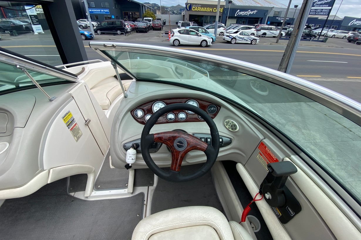This 19ft boat is the perfect size for someone who values onboard space while not compromising on maneuverability on and off the water. Powered by a Volvo Penta 4.3L 220hp engine, this boat has plenty of power for all of your watersports needs. The sought after bow walkthrough door means you can keep warm on those early morning watersports expeditions, diverting the wind out of the cockpit. The black custom made cover goes right down to the trailer ensuring your boat is well protected on and off the road.