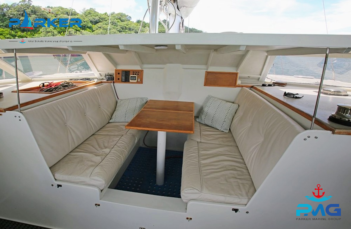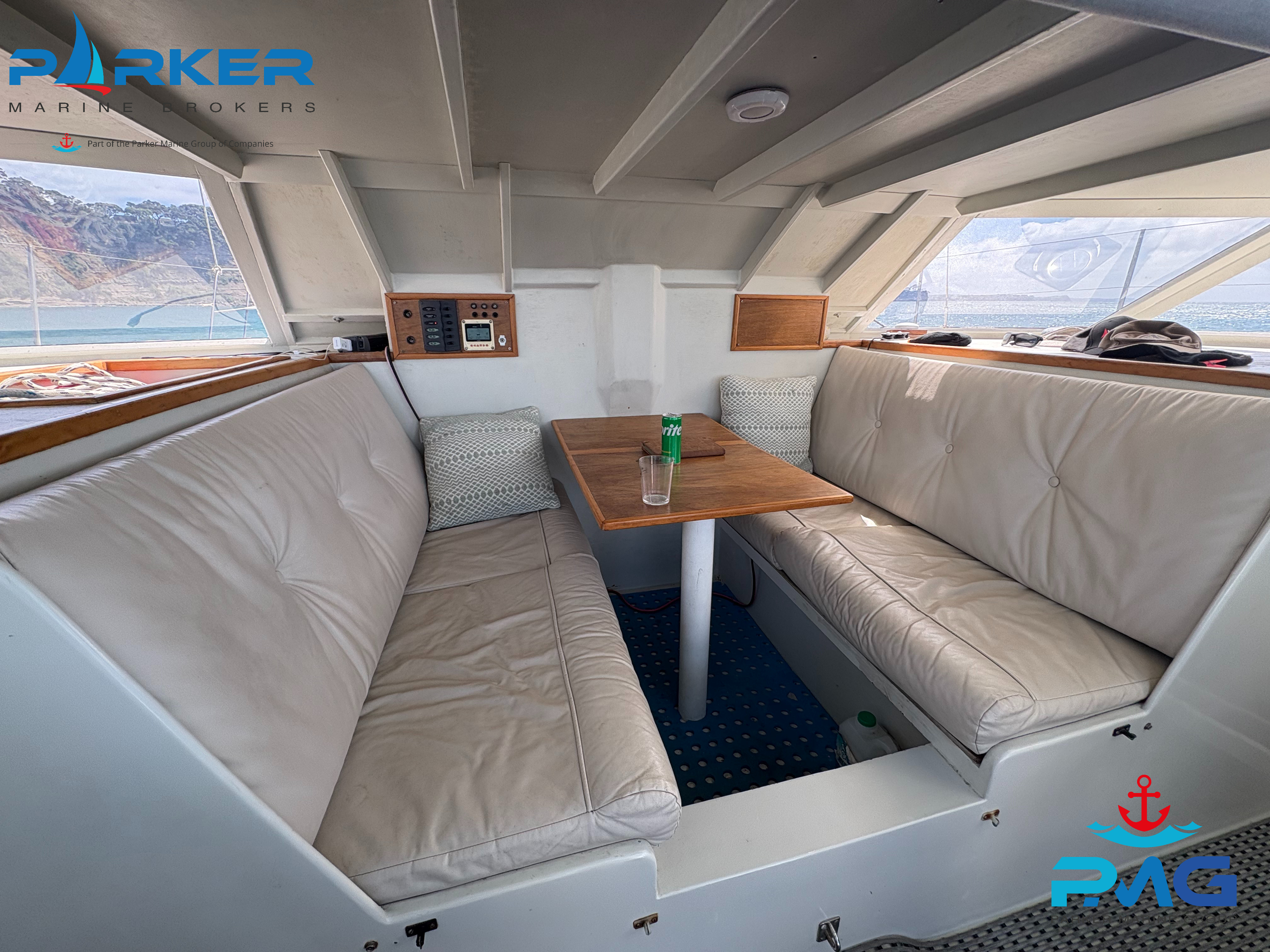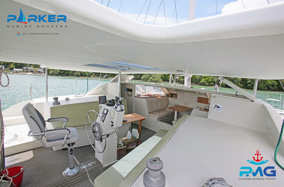 8 berths (2 x doubles), big single head and shower, galley down, 2 outdoor seating areas, 12v fridge(new) and LPG stove, plenty of storage. Central helm station with captain’s chair, GPS, depth, wind sensor, auto helm, 2 x 15hp outboards (less than 8 years old), 312w solar panel, dinghy davits, 2.9m dinghy, Custom Mike Piearce Boatbuilders hardtop (less than 6 years old), electric drum – anchor winch and electric main halyard winch, all other winches are 2 speed, brand NEW (Willis Sails) big roachy main, self-tacking jib and a big spinnaker in a sock (simple but effective sail plan) Sails easily single-handed. Elixir’s oversized rigging and well-built hulls, easy to manage engines and systems on board will equally suit the novice and experienced sailors.