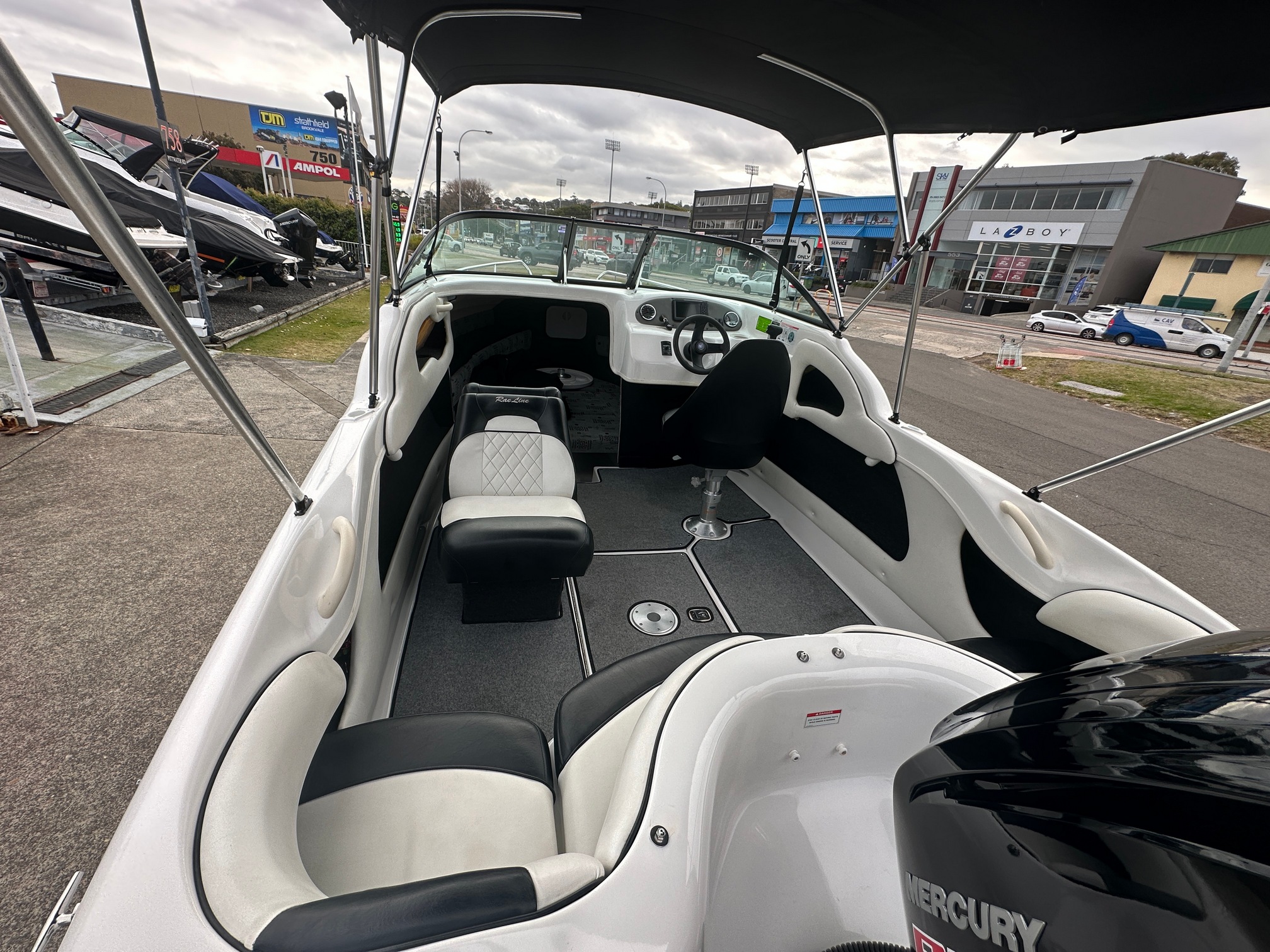 Powered by a sleek Mercury Pro XS 115HP outboard in striking White and Black, the 2020 Rae Line 186 OB is the ideal blend of performance, comfort, and versatility—perfect for families, couples, or solo boaters looking to make the most of their time on the water.