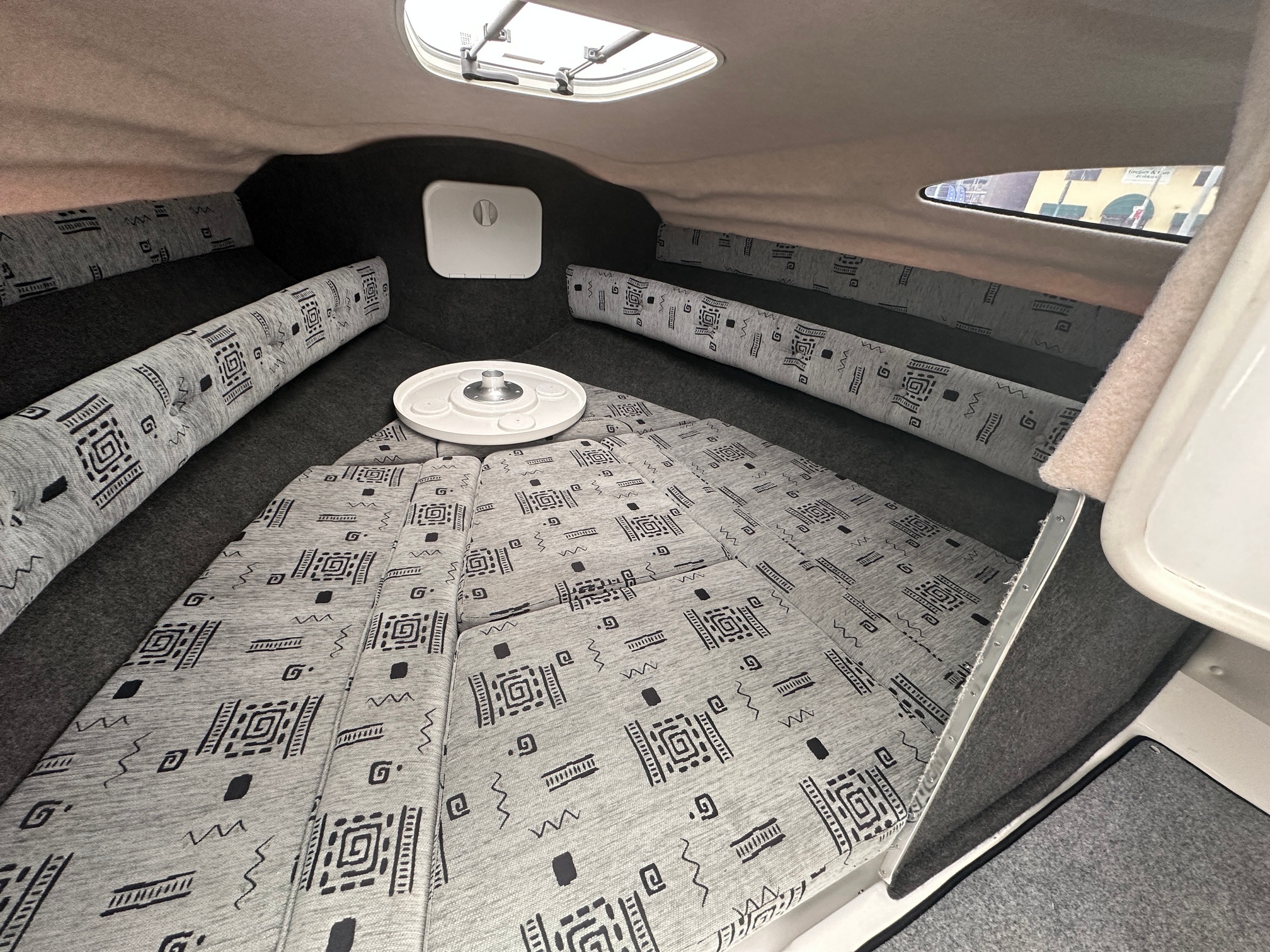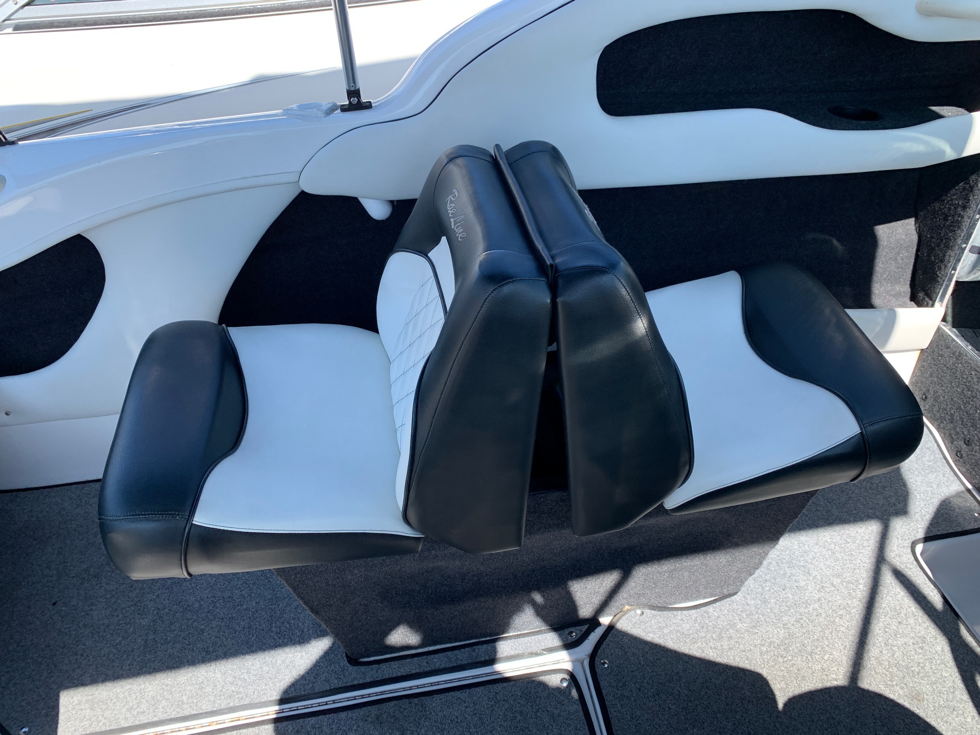 The versatile cockpit table transforms the main seating area into a social hub—ideal for onboard picnics, relaxing drinks, or simply enjoying quality time with family and friends. Two recessed rod holders cater to the angler in the group, making this boat as functional as it is fun.