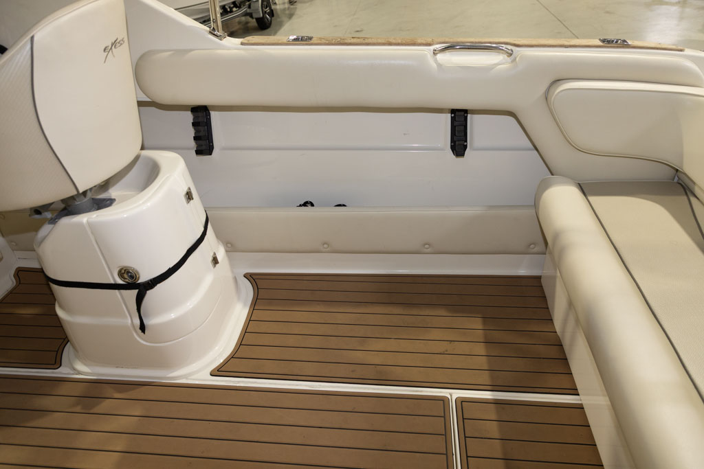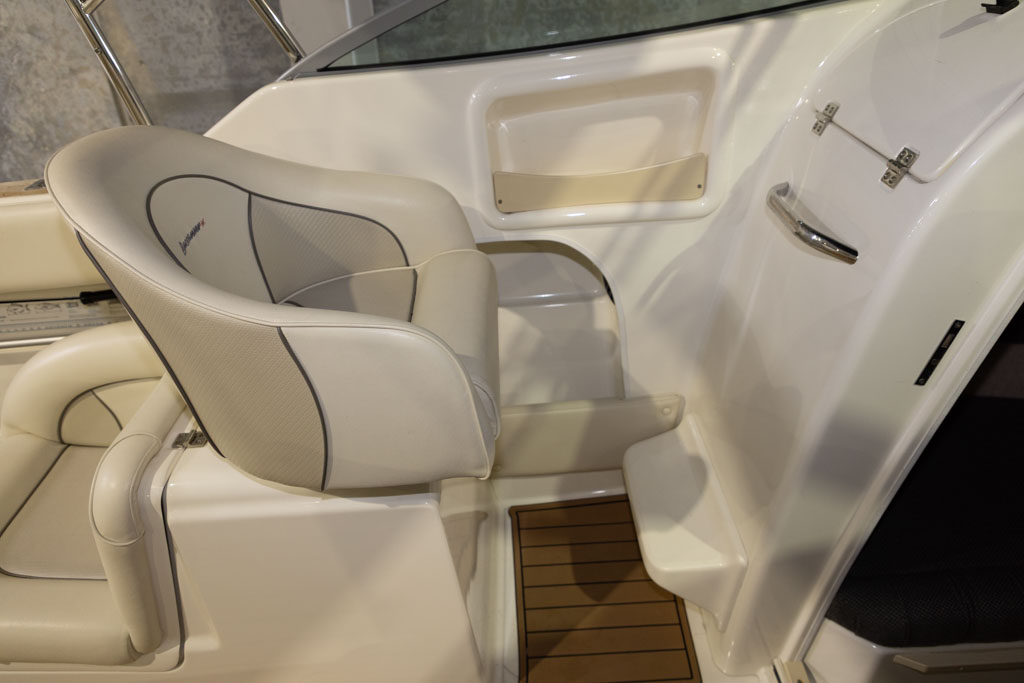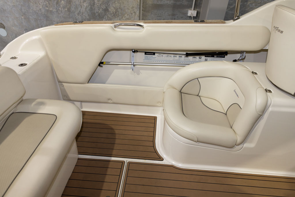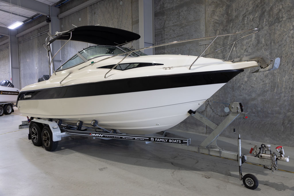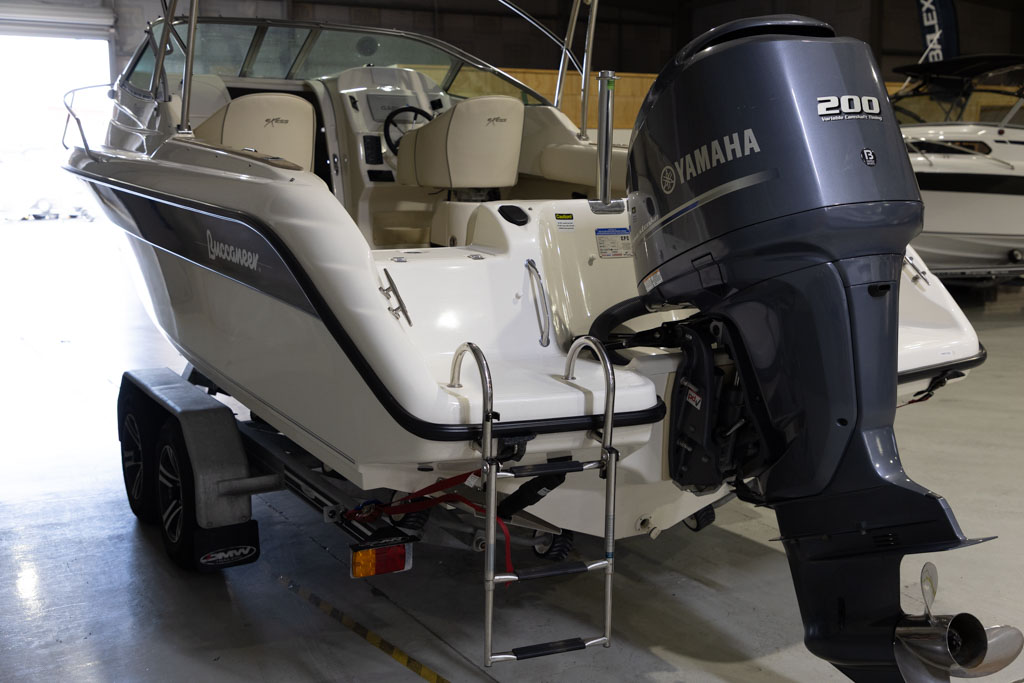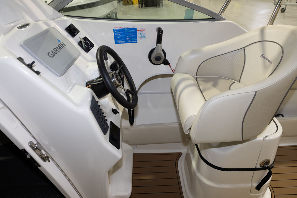 Yamaha’s four-stroke technology ensures quiet operation and dependable power whether you’re running offshore, cruising the lake, or towing skiers. The boat sits on a DMW tandem-axle braked trailer, providing excellent on-road stability and easy launching and retrieval. This Buccaneer is exceptionally well equipped, featuring hydraulic steering for effortless handling and precise control.