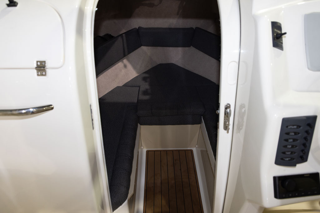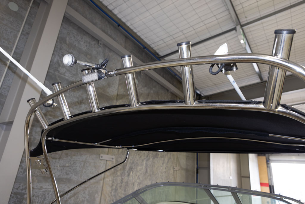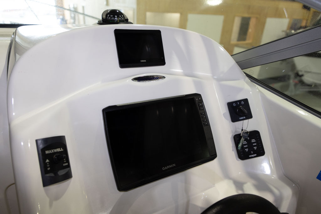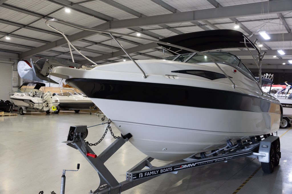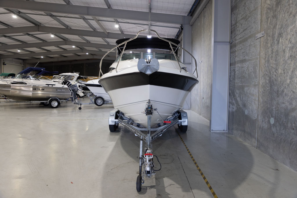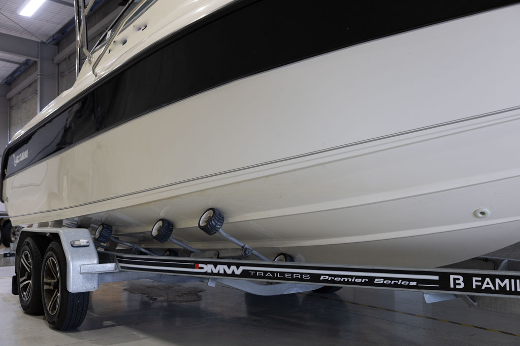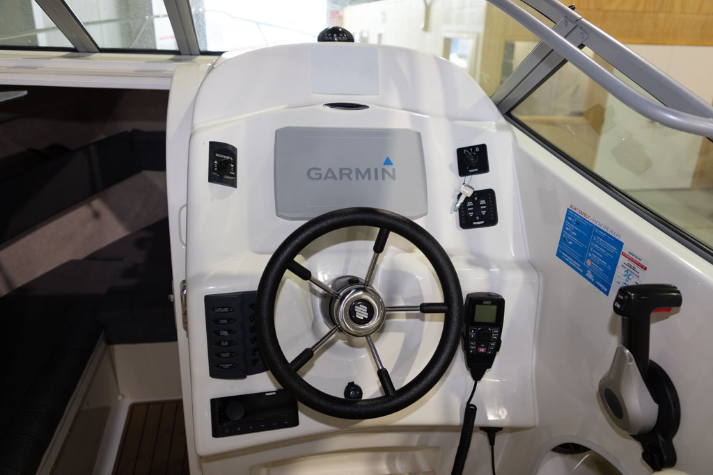Navigation and fish-finding are covered with a Garmin sounder, while anchoring is made simple with a Maxwell anchor winch. Automatic Lectro trim tabs allow the boat to be easily balanced for varying loads and conditions, enhancing ride comfort and performance. Comfort and entertainment are well catered for with a Fusion stereo system, GME VHF radio, and a full set of clears for protection from the elements.