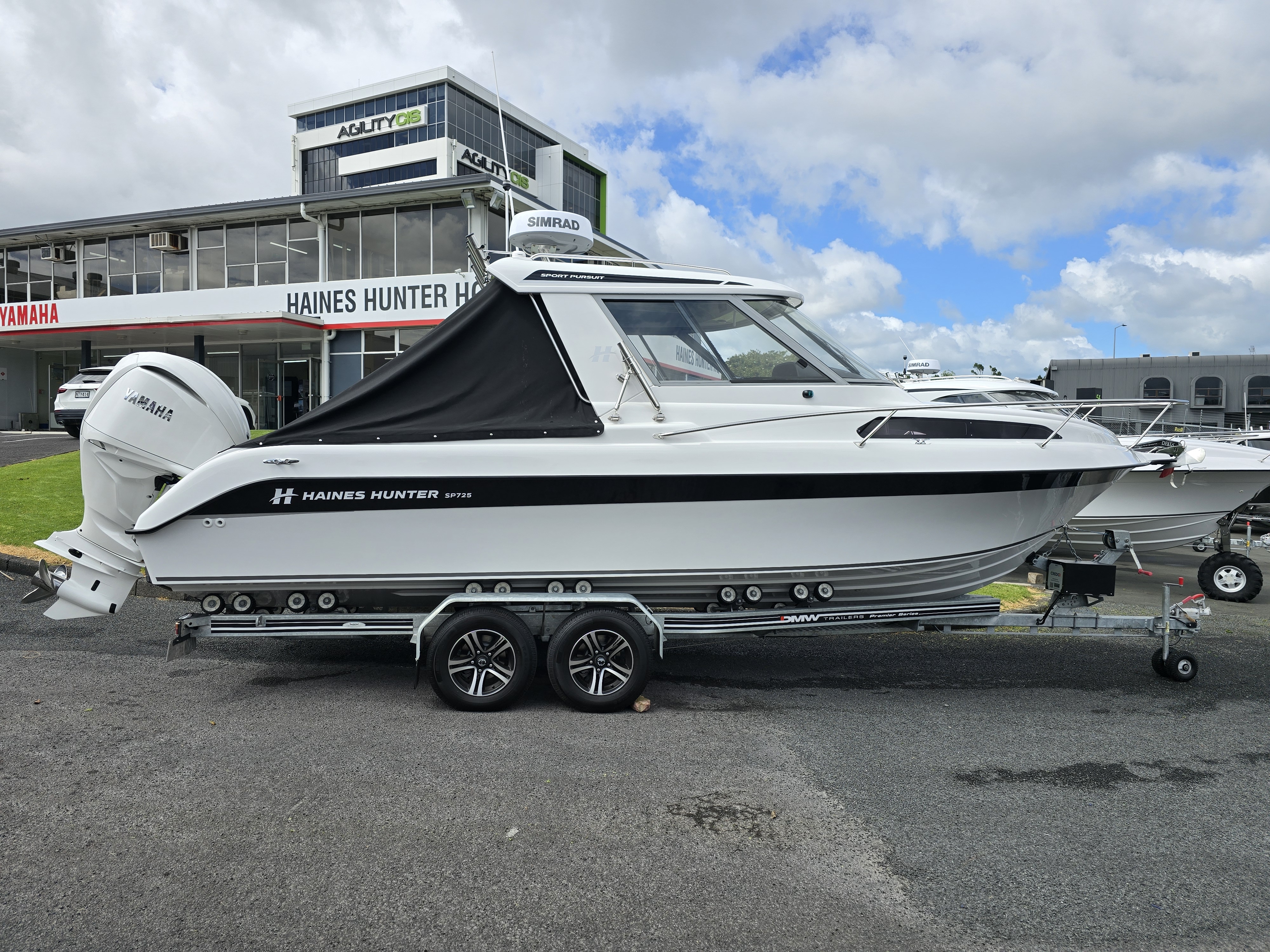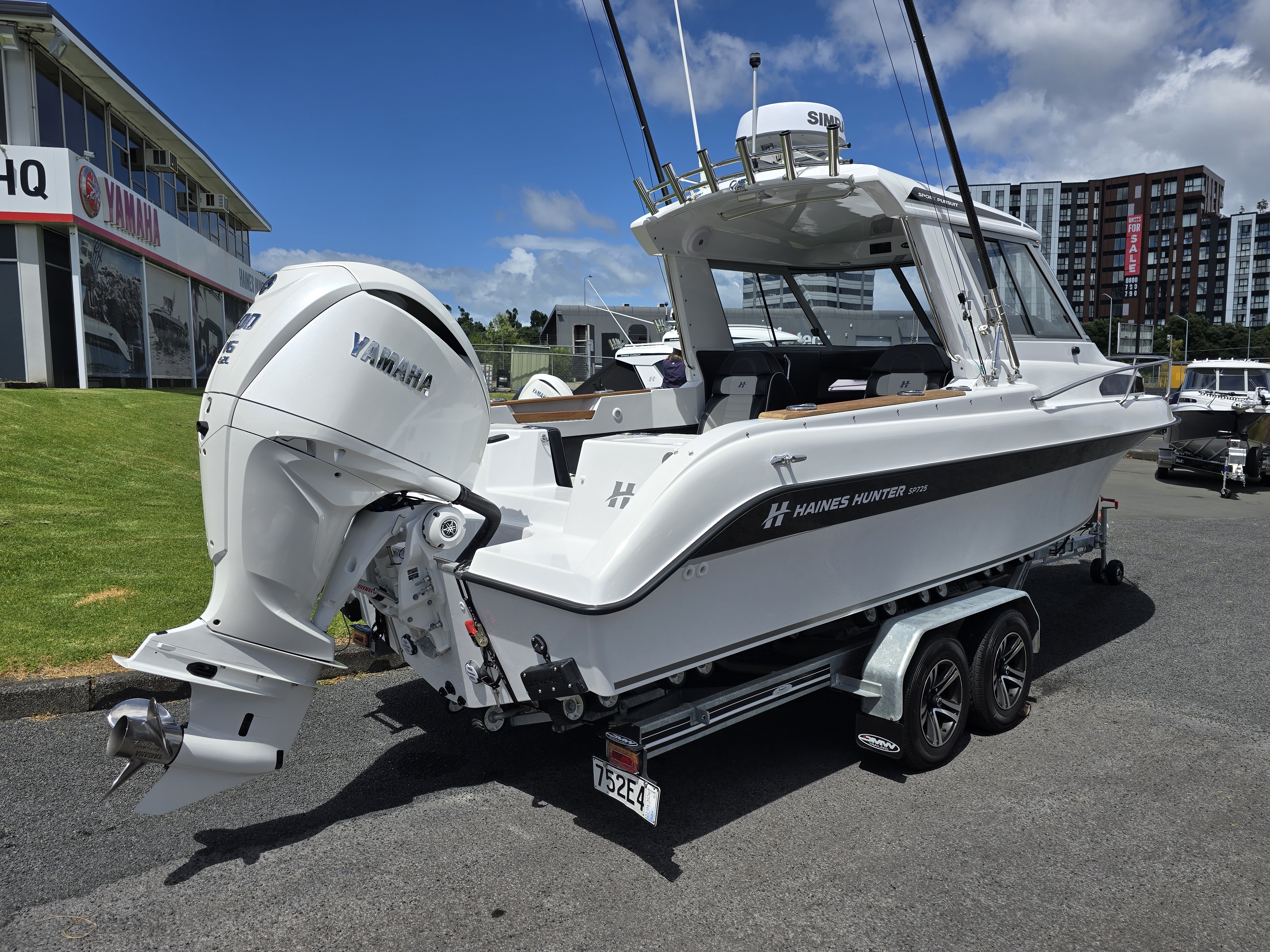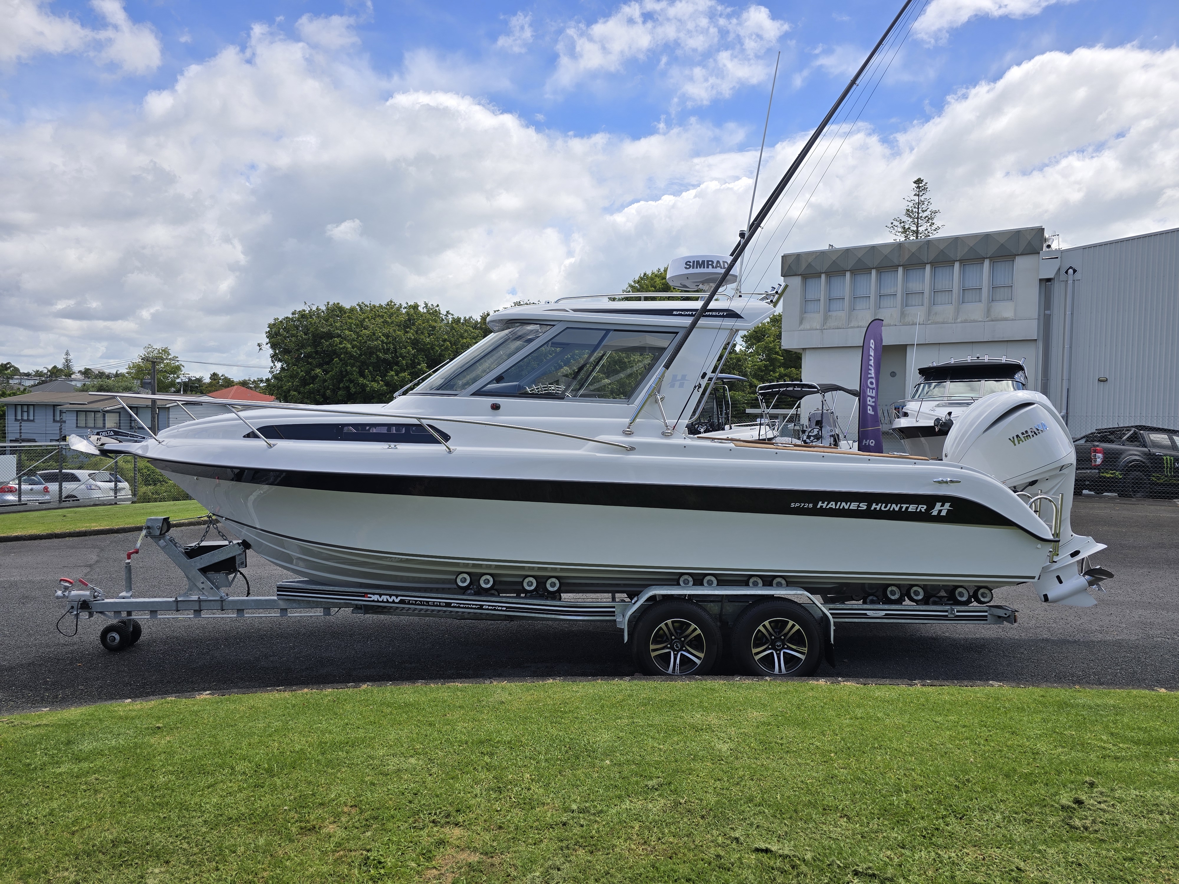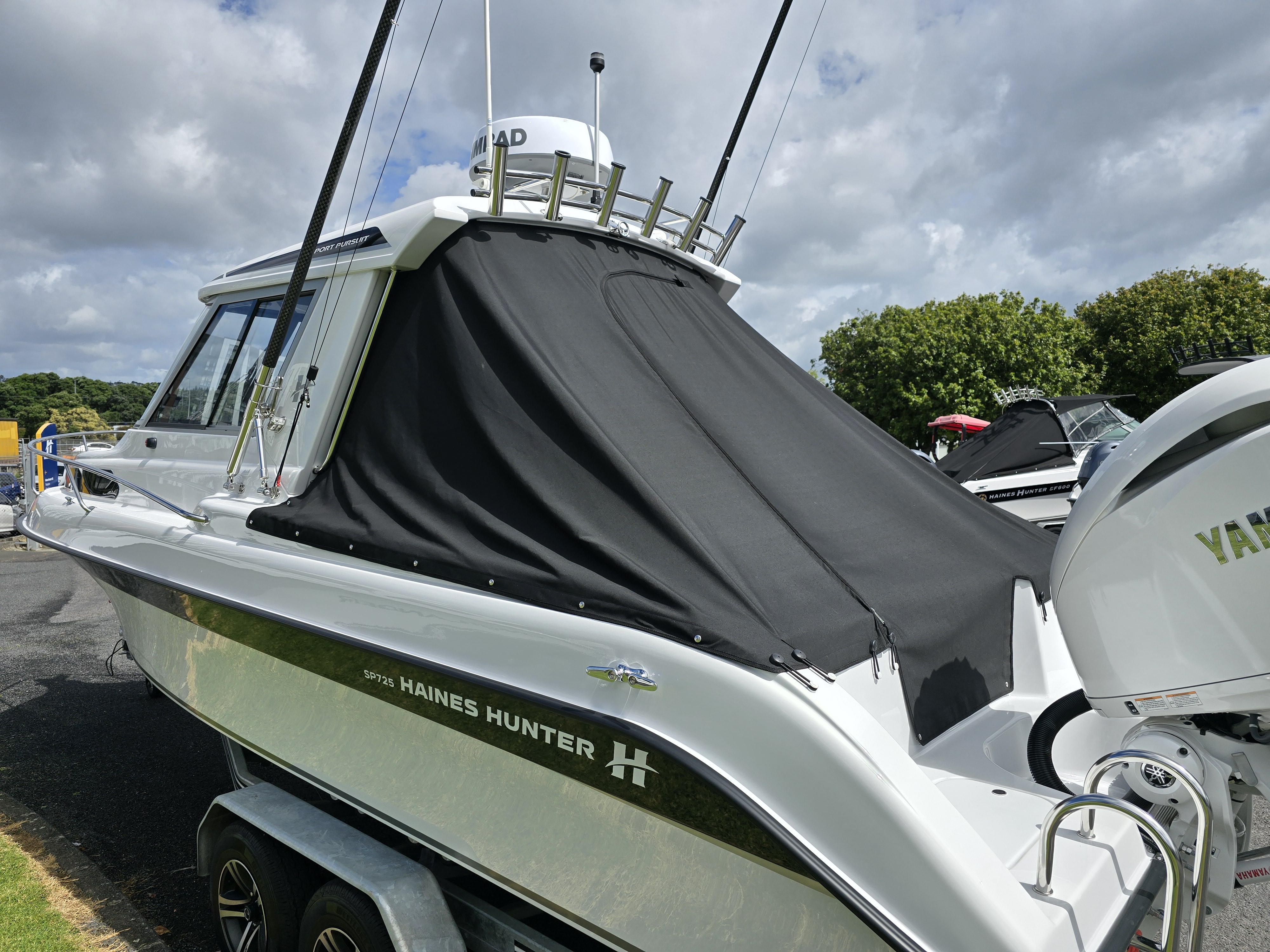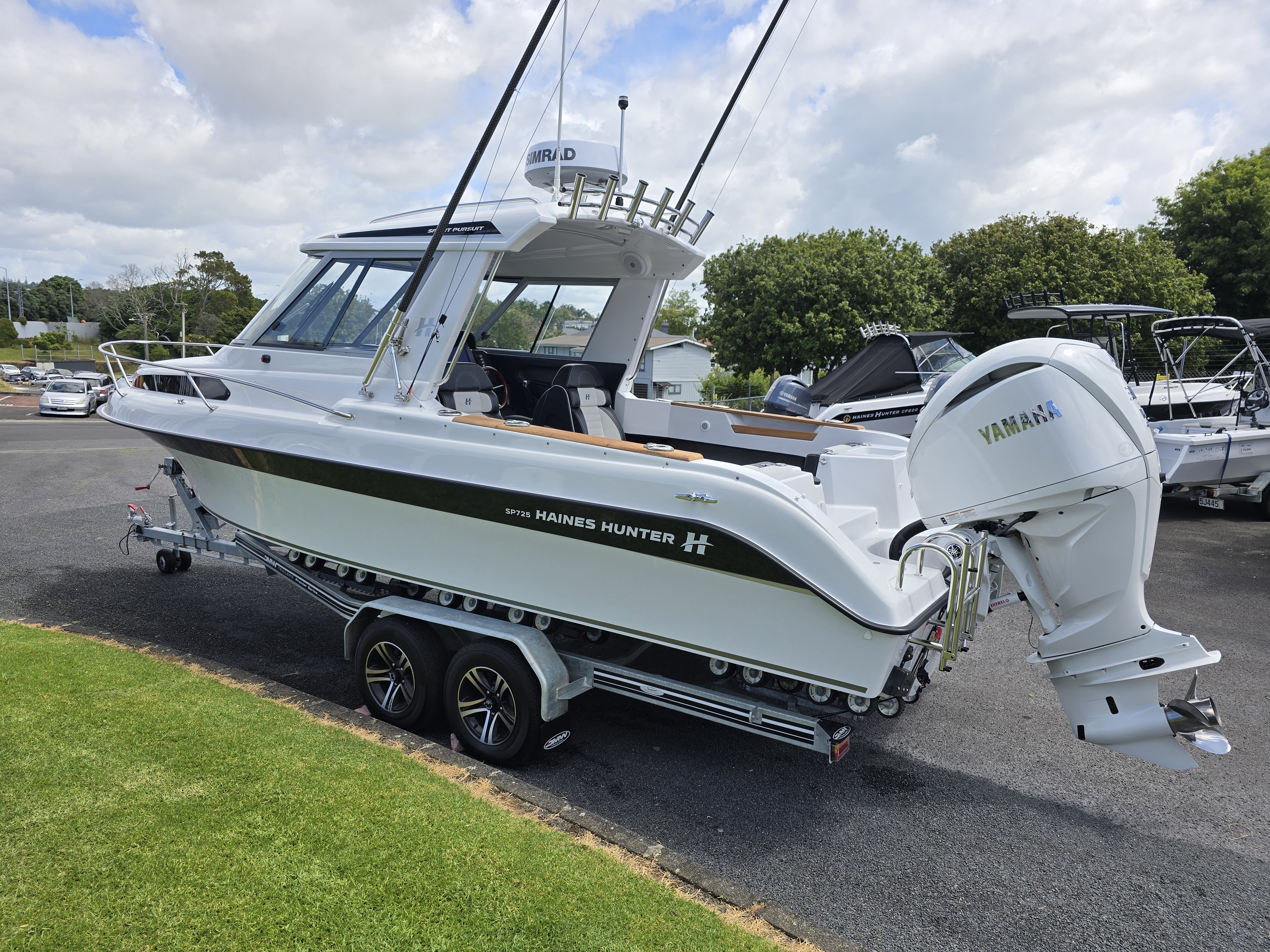 Underwater lights add a premium touch and enhance evening ambience at anchor or on the water. Sitting on a tandem-axle braked trailer, this package is designed for safe, stable towing and effortless launching and retrieval. Overall, this 2023 Haines Hunter SP725 SeaKeeper represents a rare opportunity to own a near-new, fully loaded offshore weapon without the wait time of a new build.