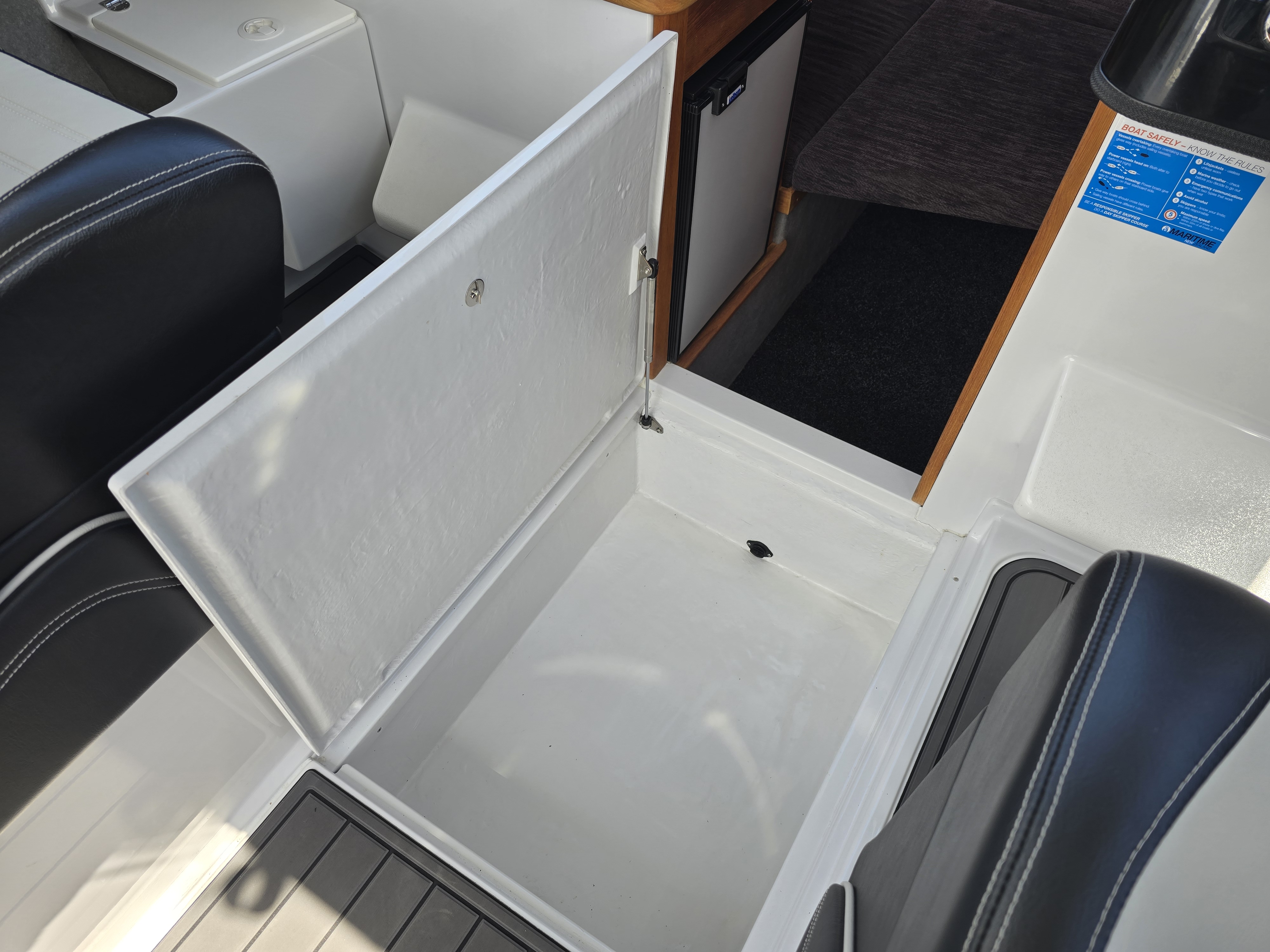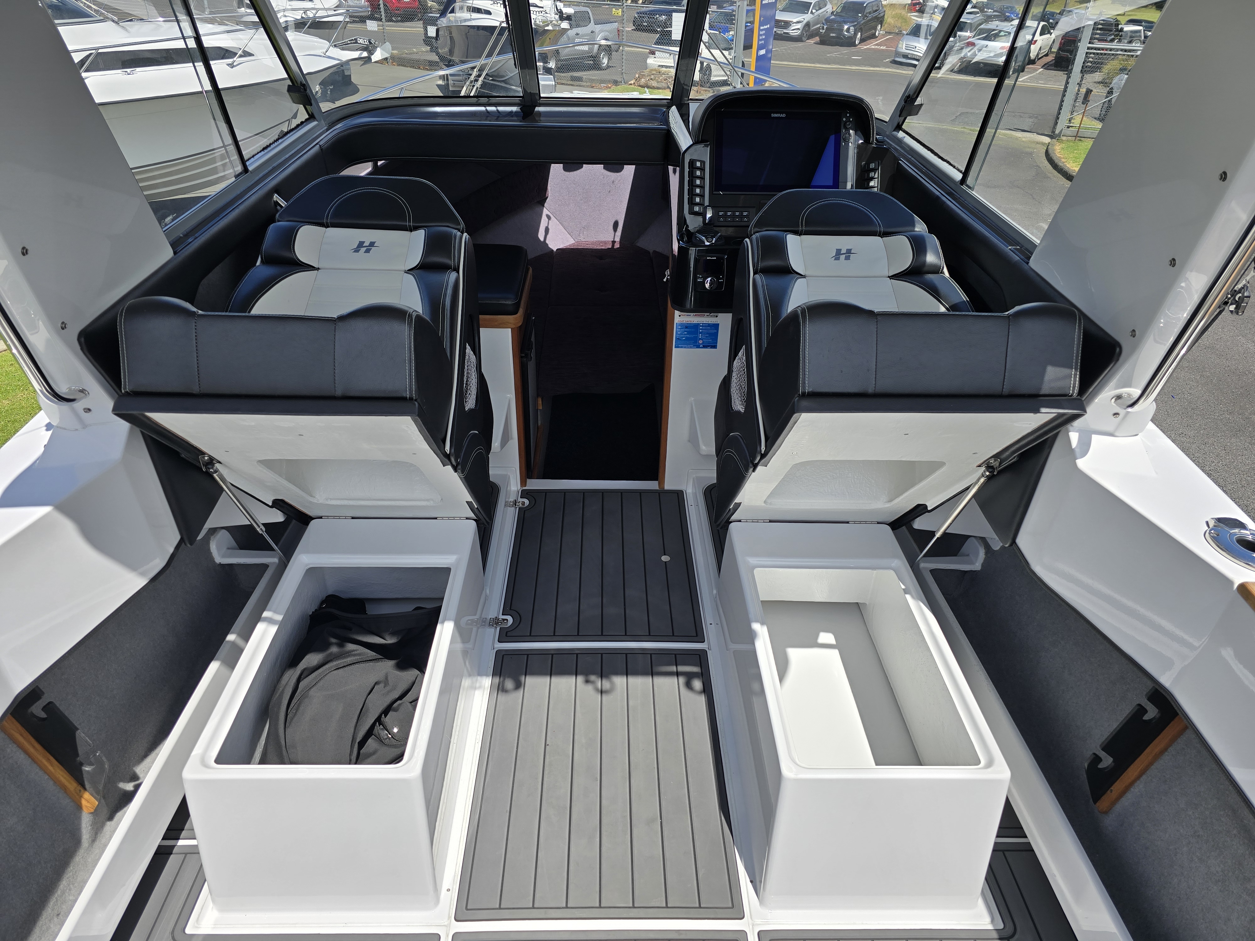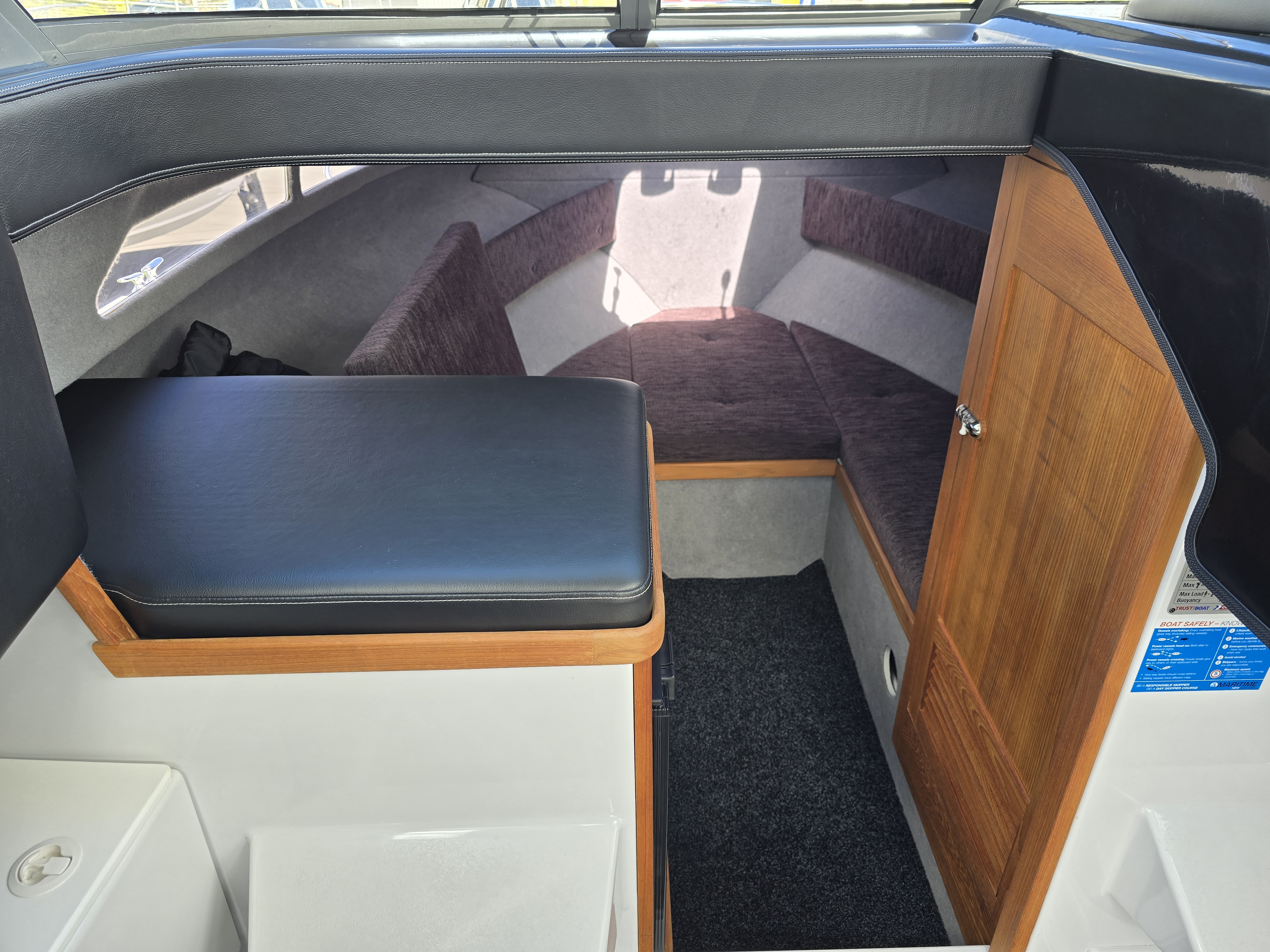 A saltwater washdown keeps the cockpit clean after fishing, and outriggers make this an incredibly capable trolling platform. Comfort and luxury are well catered for with a cabin fridge, electric toilet, and high-quality Ultralon flooring throughout. Electronics are top-tier, featuring a Simrad NSS16 EVO3S chartplotter/sounder paired with Simrad radar, delivering exceptional navigation, situational awareness, and fish-finding capability.
