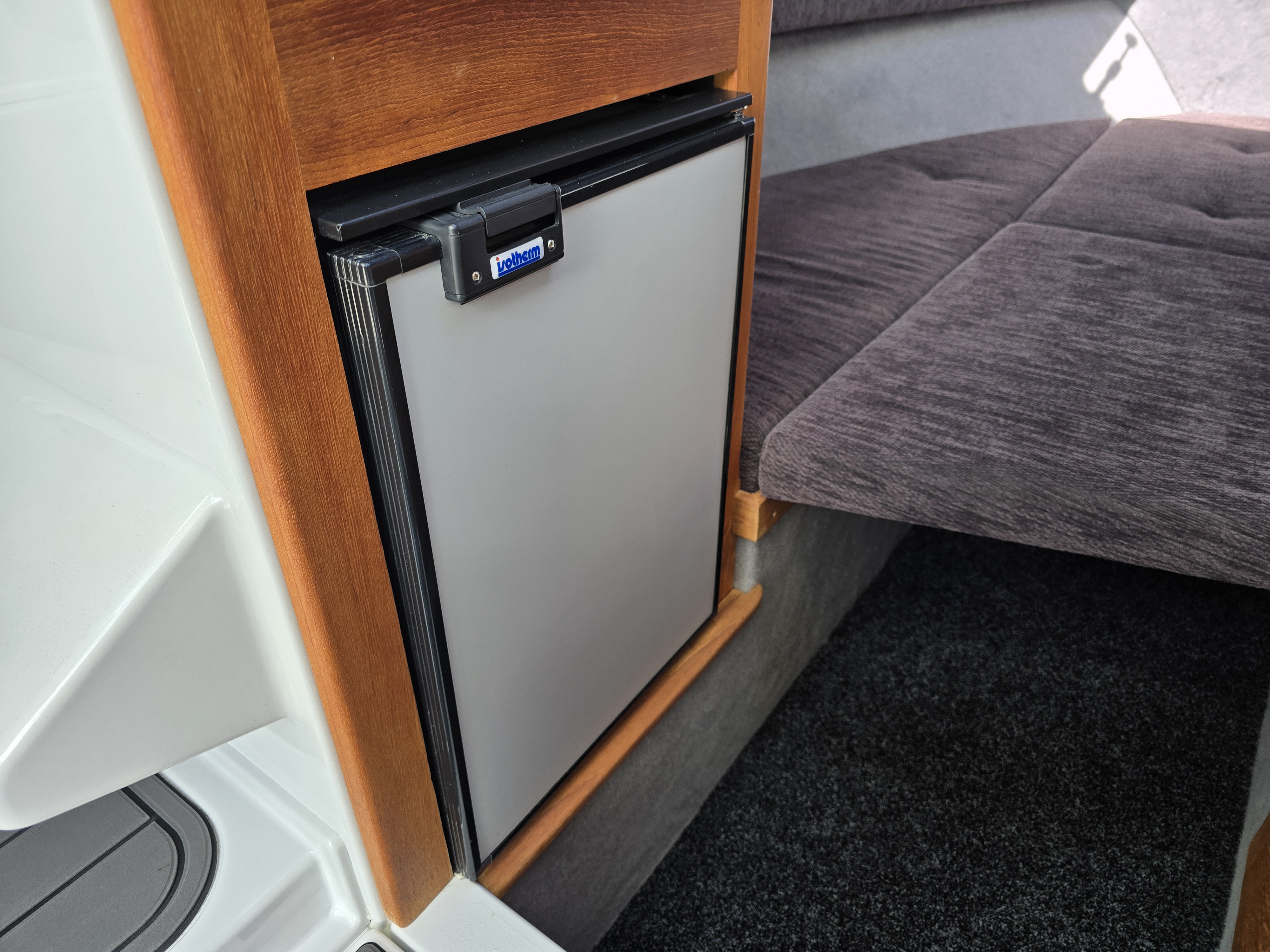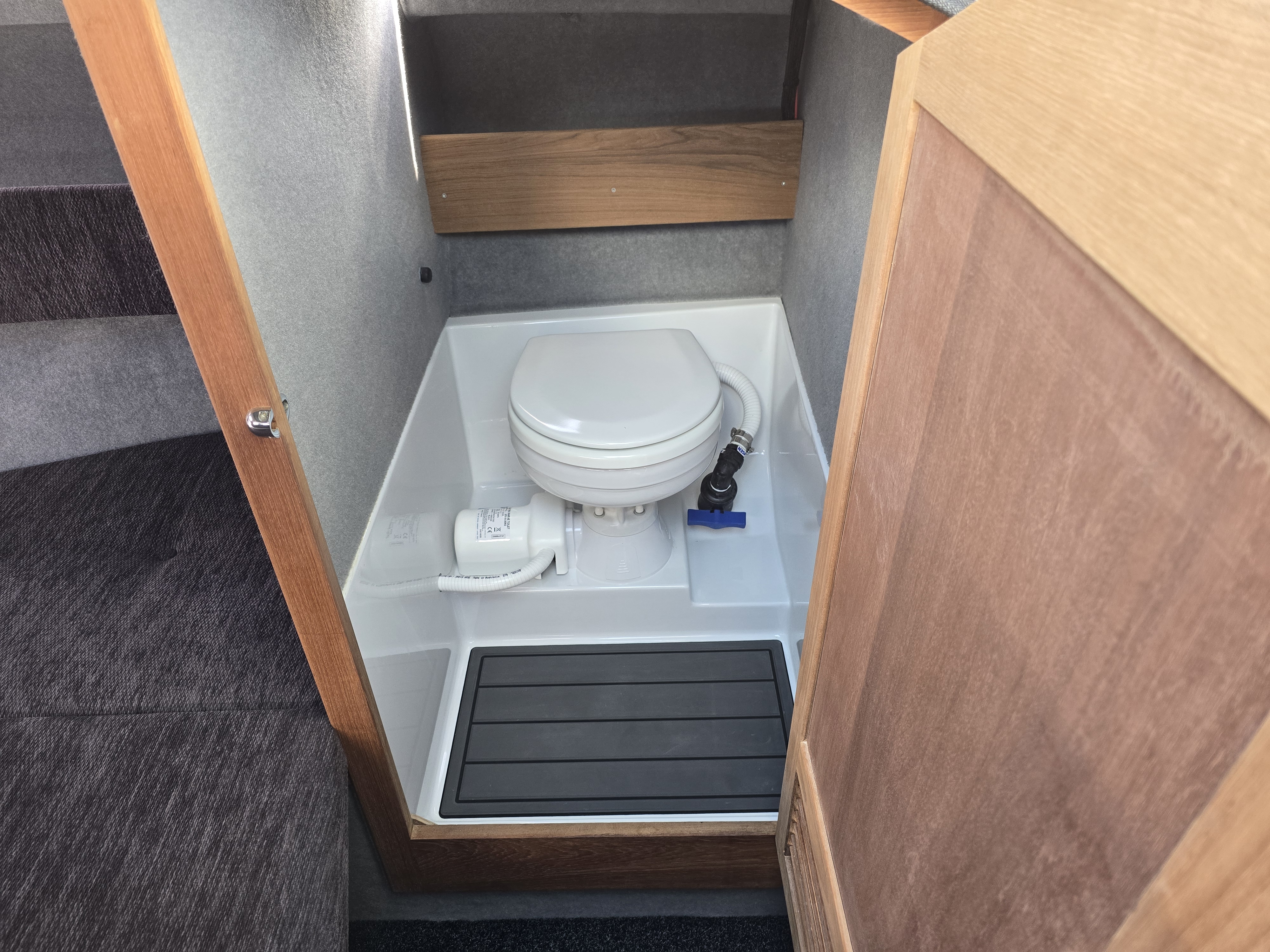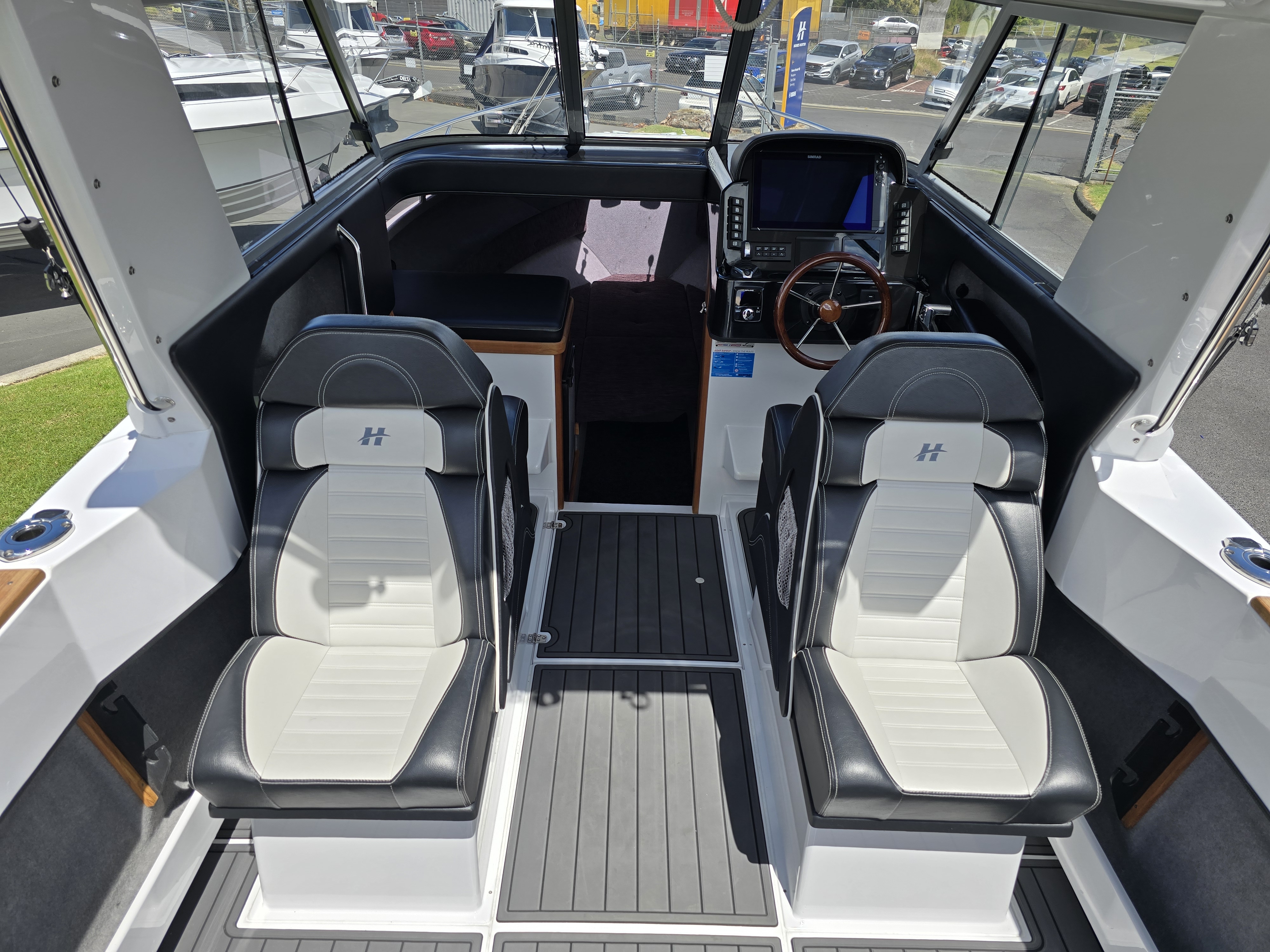 A saltwater washdown keeps the cockpit clean after fishing, and outriggers make this an incredibly capable trolling platform. Comfort and luxury are well catered for with a cabin fridge, electric toilet, and high-quality Ultralon flooring throughout. Electronics are top-tier, featuring a Simrad NSS16 EVO3S chartplotter/sounder paired with Simrad radar, delivering exceptional navigation, situational awareness, and fish-finding capability.