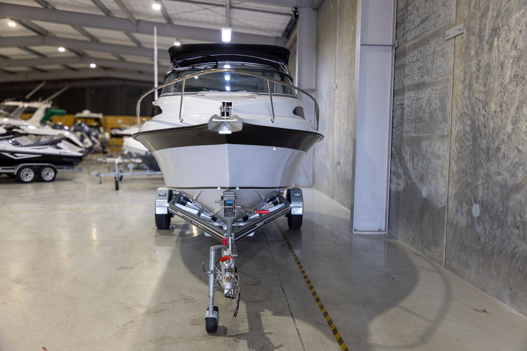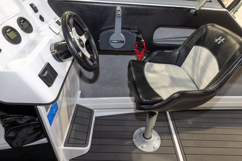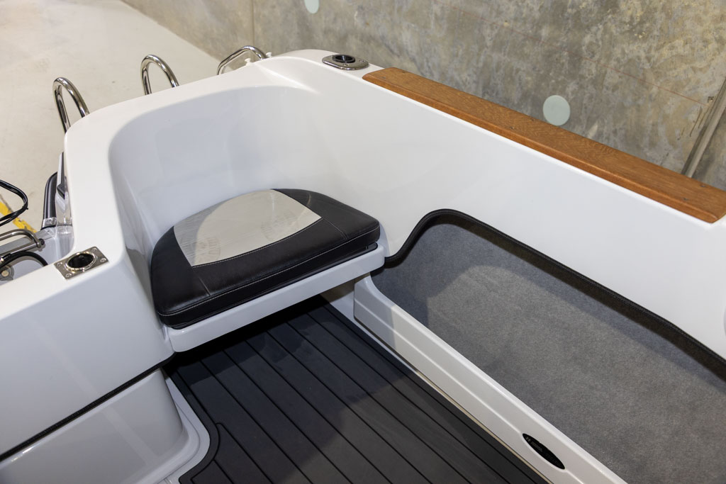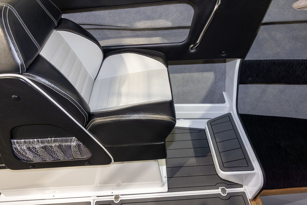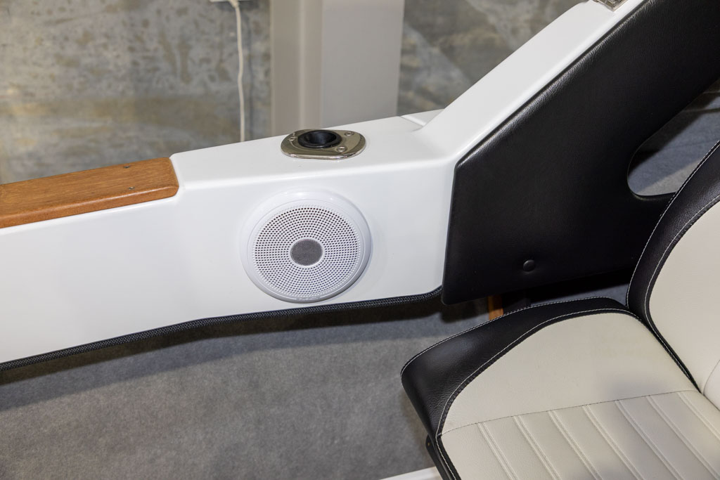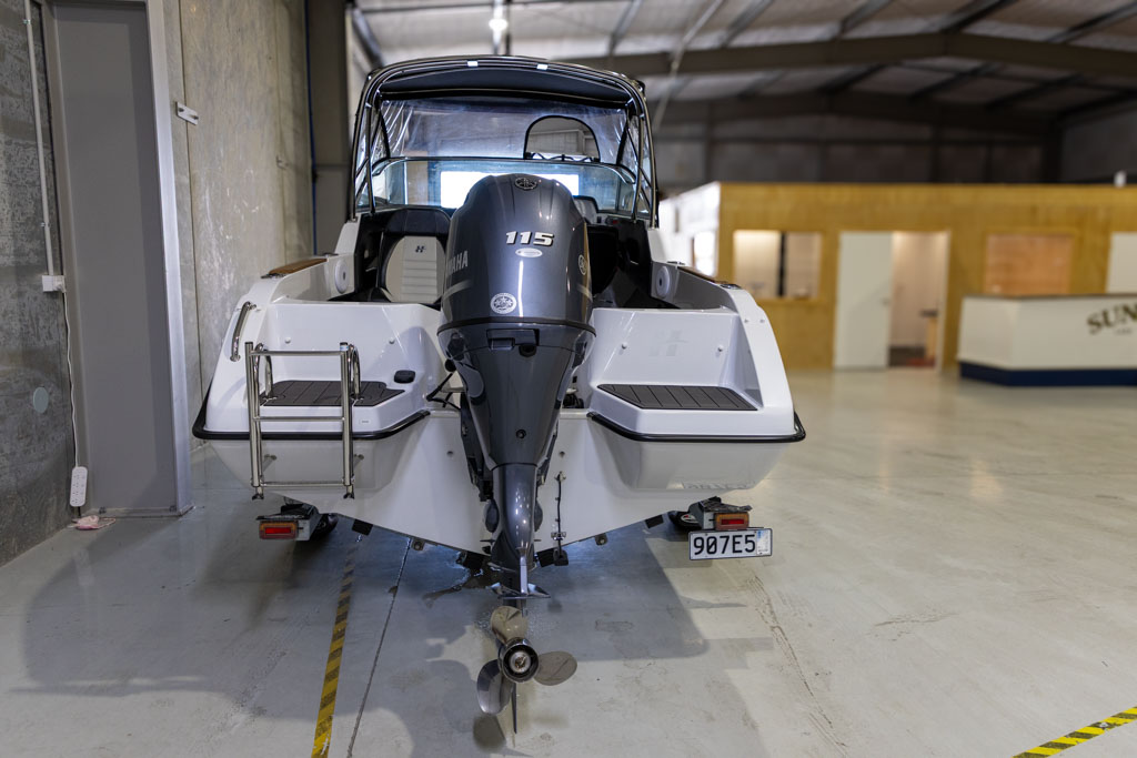 This boat comes very well equipped with a great range of quality extras. Electronics include a Lowrance Elite 7 GPS/Fish Finder and Uniden VHF for safe navigation and communication, along with a Fusion stereo to set the mood on the water. A stainless bimini with backdrop provides excellent shelter and versatility, while the Ultralon flooring adds a premium, modern look that is durable and easy to maintain.