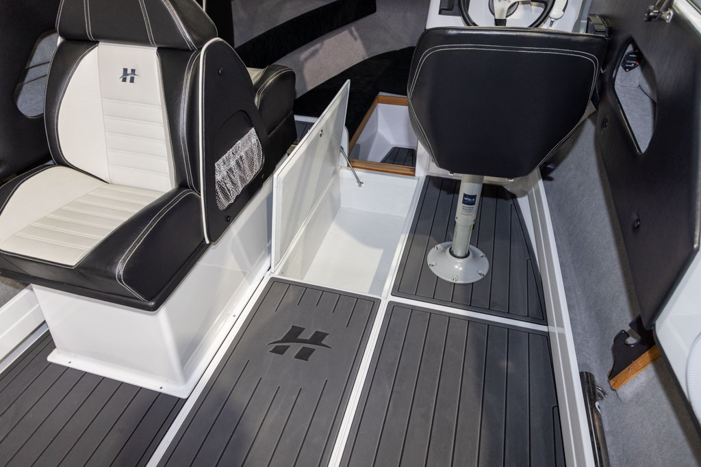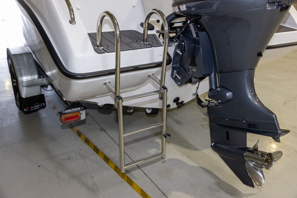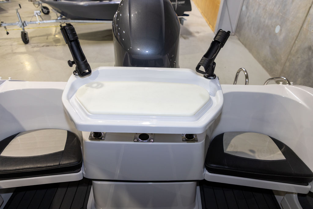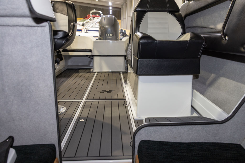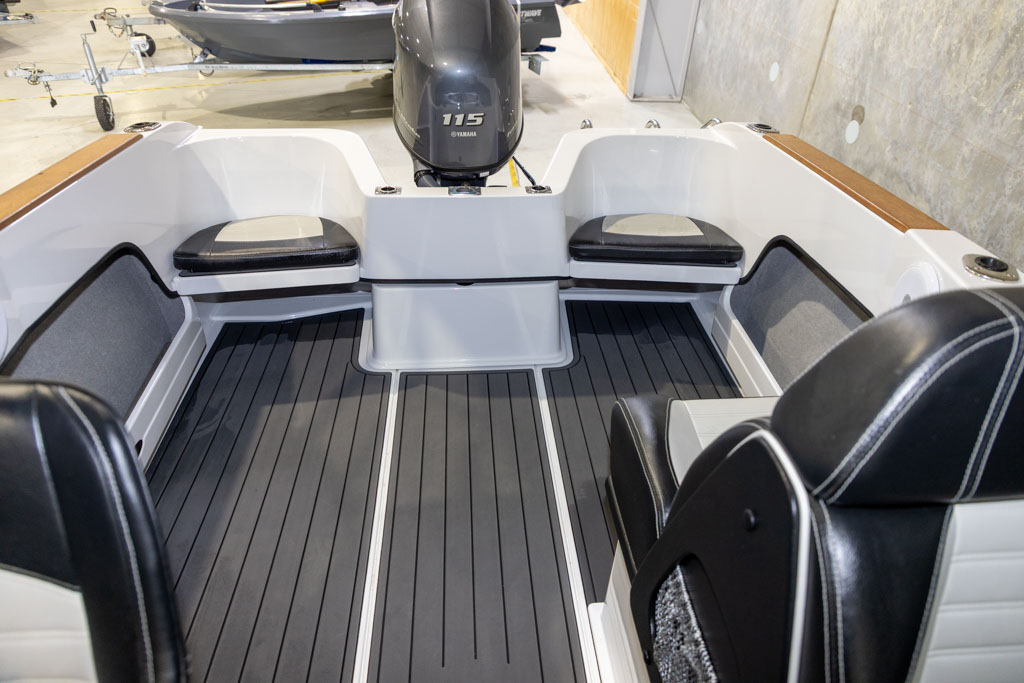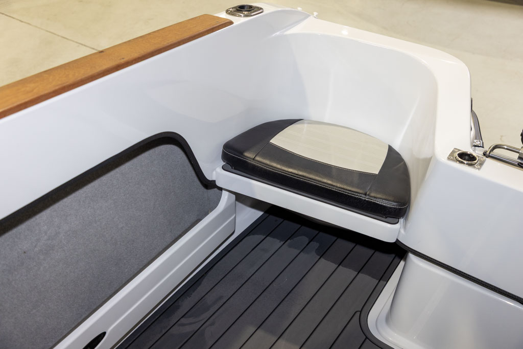 This boat comes very well equipped with a great range of quality extras. Electronics include a Lowrance Elite 7 GPS/Fish Finder and Uniden VHF for safe navigation and communication, along with a Fusion stereo to set the mood on the water. A stainless bimini with backdrop provides excellent shelter and versatility, while the Ultralon flooring adds a premium, modern look that is durable and easy to maintain.