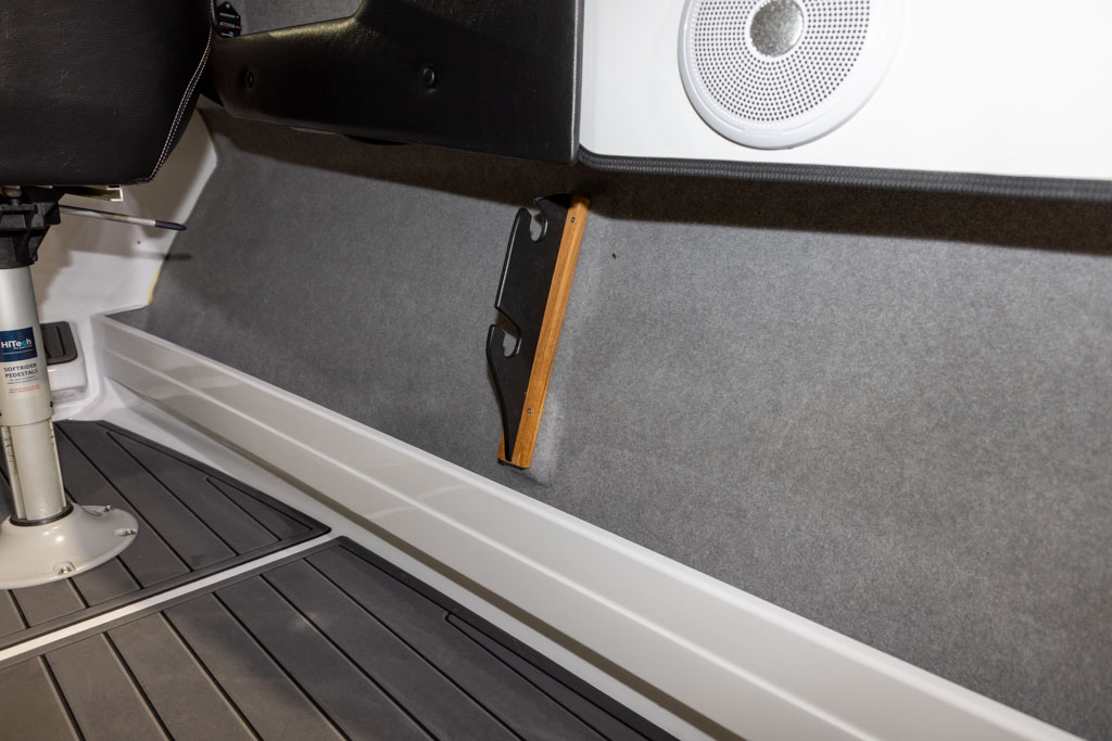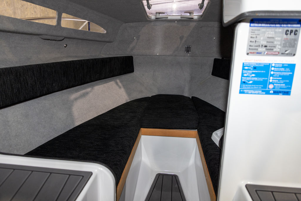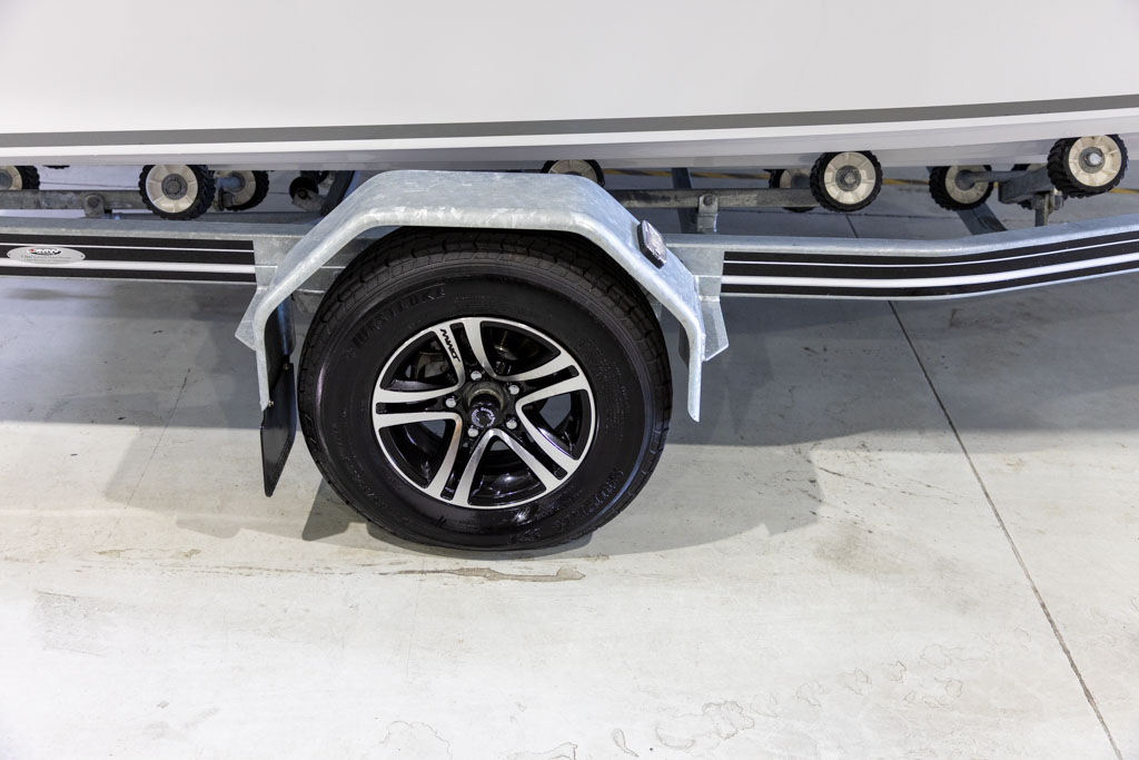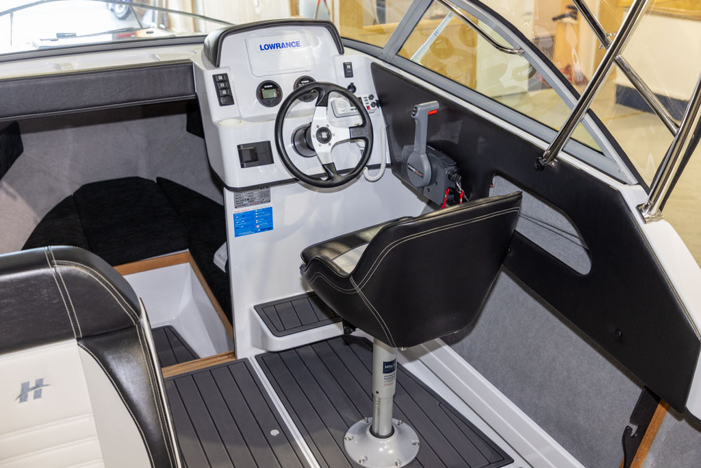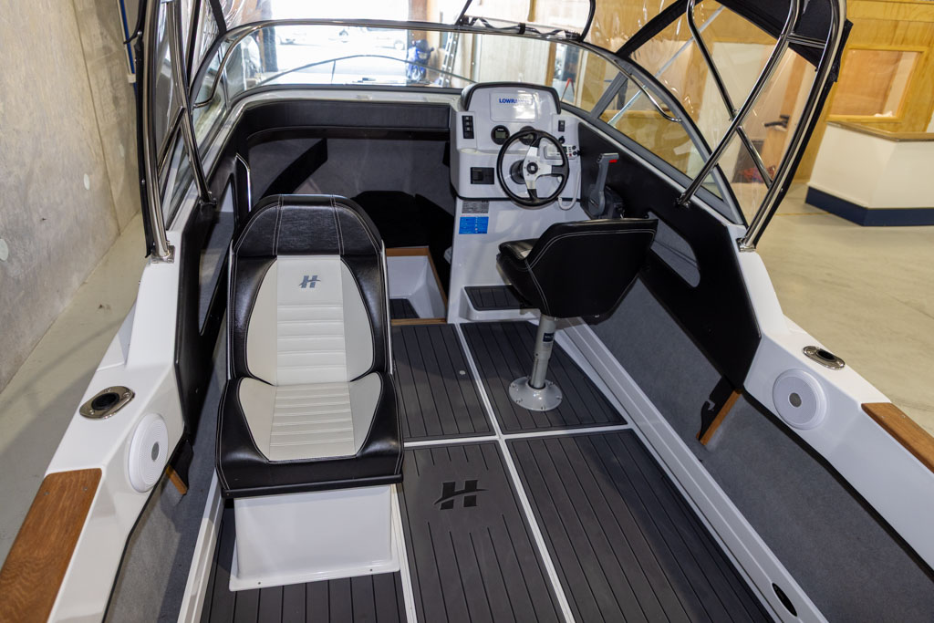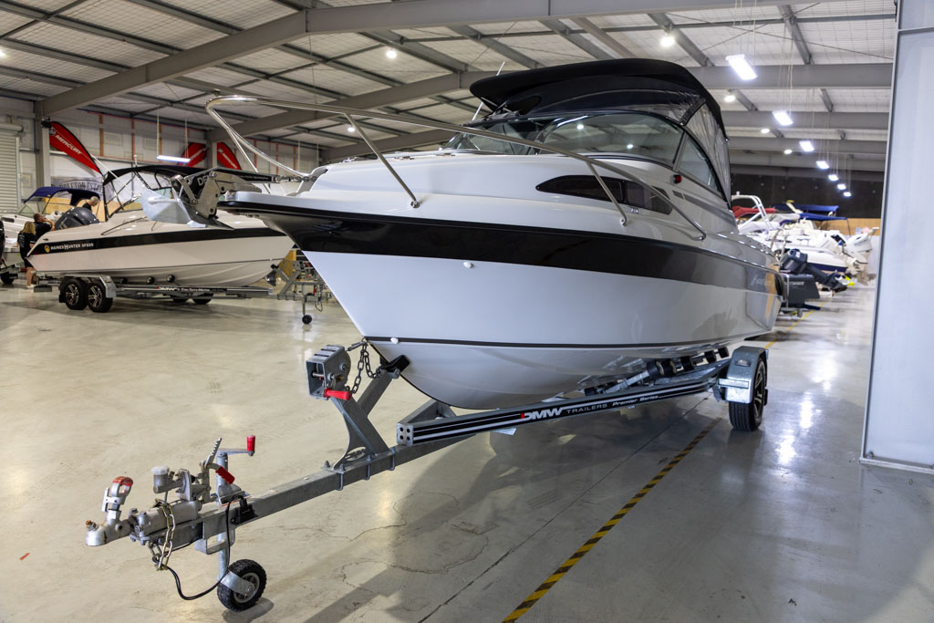 This boat comes very well equipped with a great range of quality extras. Electronics include a Lowrance Elite 7 GPS/Fish Finder and Uniden VHF for safe navigation and communication, along with a Fusion stereo to set the mood on the water. A stainless bimini with backdrop provides excellent shelter and versatility, while the Ultralon flooring adds a premium, modern look that is durable and easy to maintain.