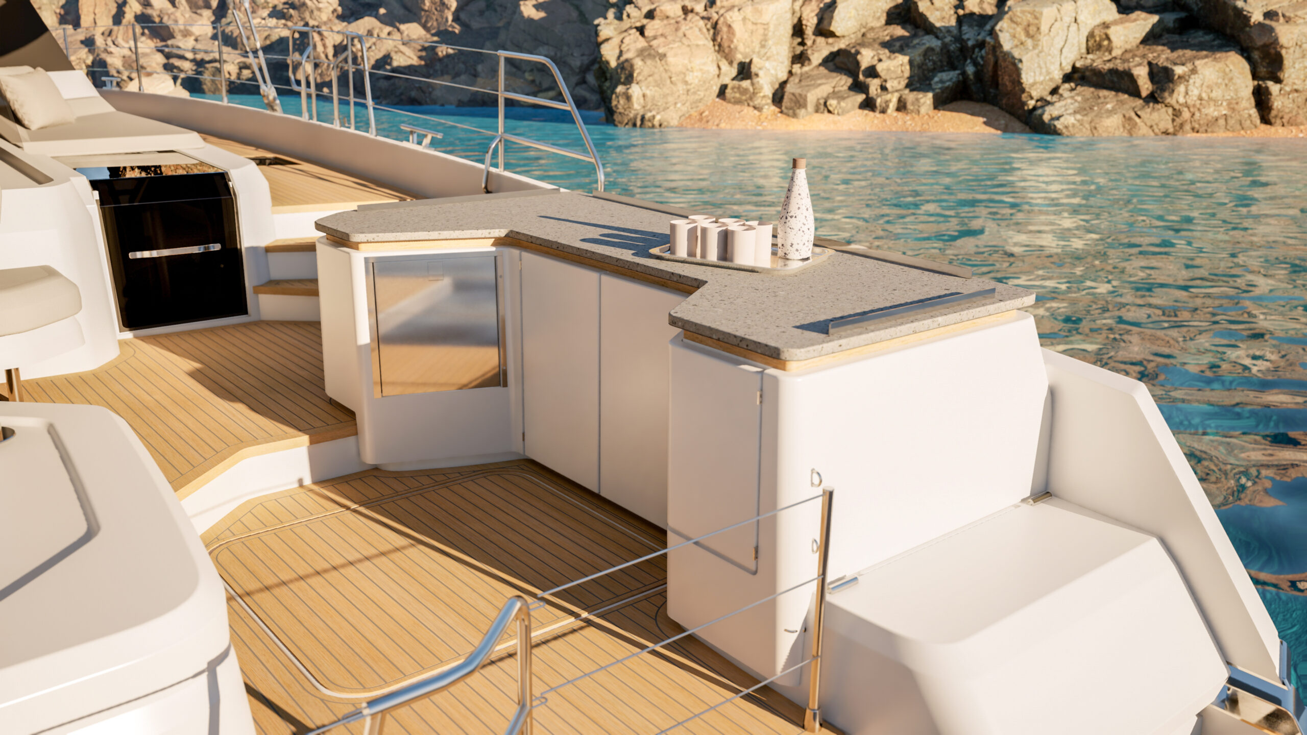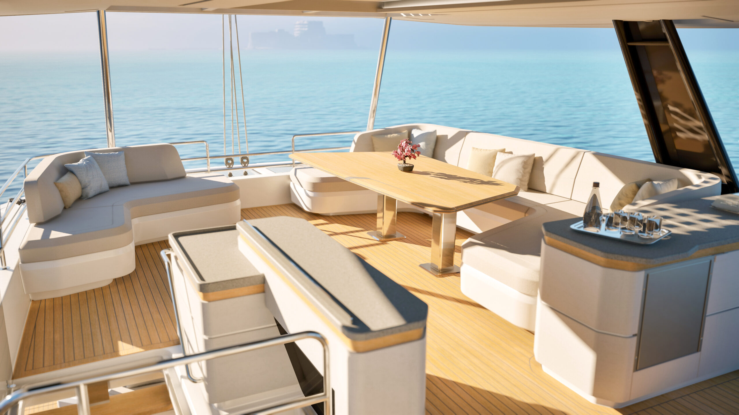 Every detail has been crafted for balance and flow, from the expansive 51 m² aft terrace lounge and 31 m² panoramic flybridge to the 26 m² foredeck with integrated spa and the 25 m² Maestro suite. Each space invites relaxation, entertainment, or retreat, offering versatility for every mood. Owners can select from up to eight layout configurations, ensuring the yacht reflects their personal lifestyle.