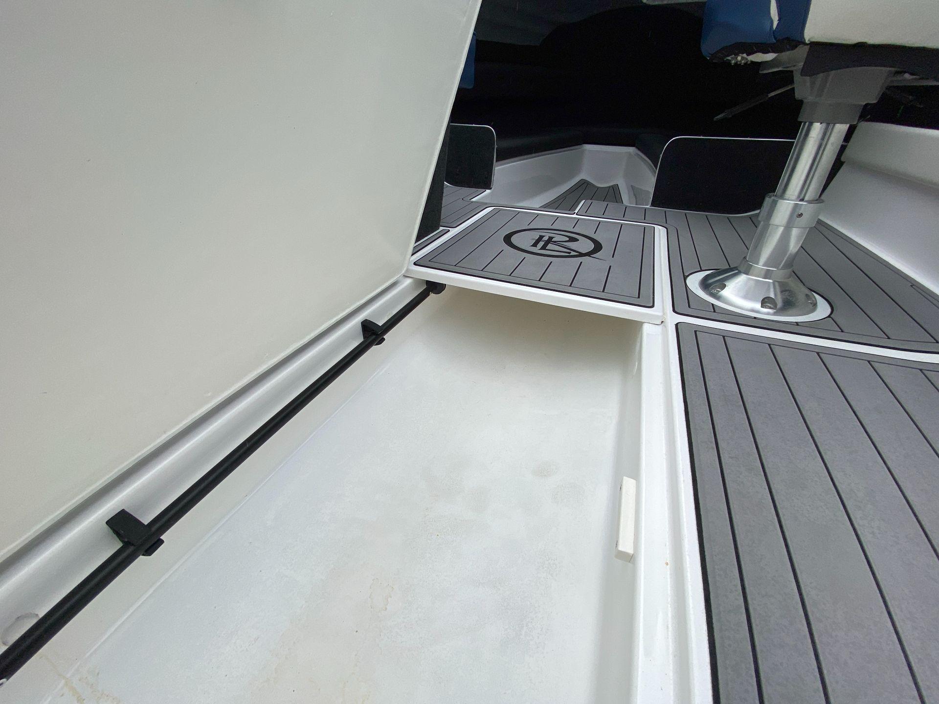 Completed with a blue & white vinyl seating combo and complemented with Sea Deck throughout, you will be boating in style all day long. When the weather turns, you’ll have the added protection and safety that a cabin provides. Storage isn’t an issue with large storage pockets that run the length of the cockpit as well as a dedicated ski storage locker.