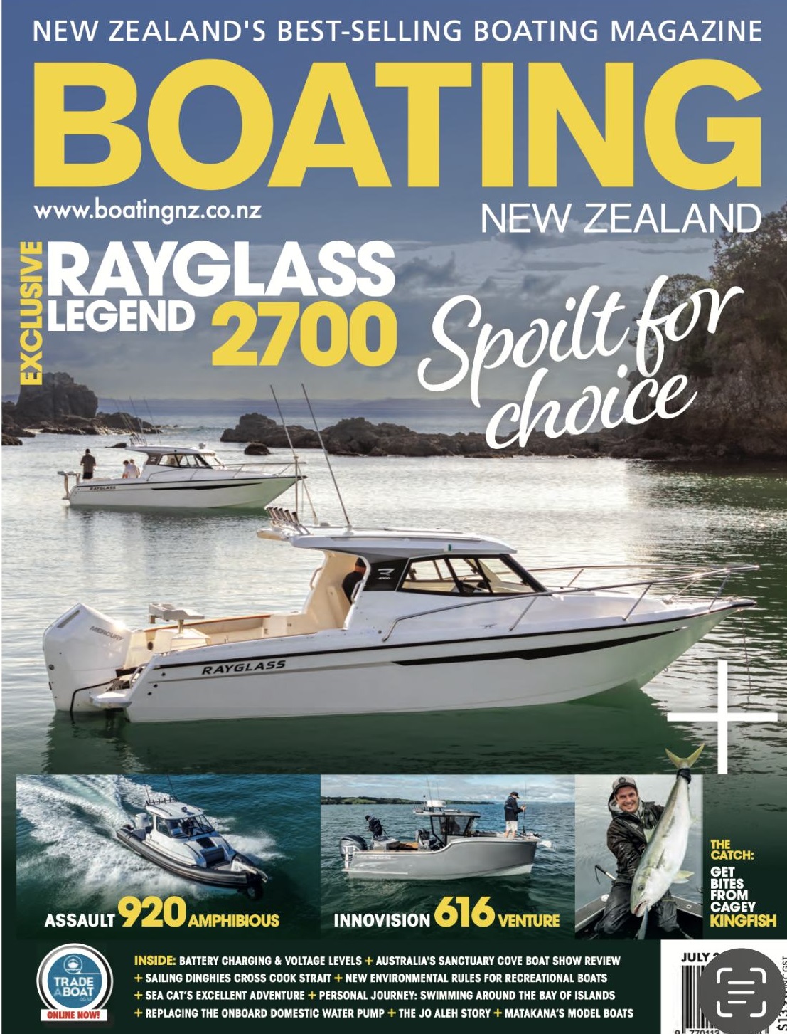 The July issue spotlights the debut of the Rayglass Legend 2700 and features reviews of the Innovision 616 Venture and Assault 920 Amphibious. It dives into battery systems, marine mammal tracking, and NZ’s new emissions rules. Feature stories follow adventurers across Cook Strait, swimmers in the Bay of Islands, and volunteers in Dominica. Jo Aleh’s inspiring career is profiled, alongside coverage of fishing techniques, model shipbuilding, and Wild Thing 100’s race ambitions.