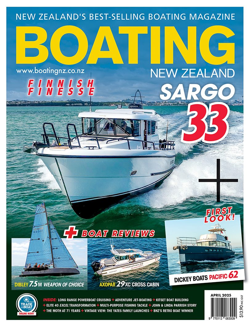 In April's magazine issue, we take a first look at the stunning Dicky Boats Pacific 62 and put the Sargo 33, and Axopar 29XC Cross Cabin through their paces. We also take a deep dive into Weapon of Choice , and a Dibley 7.5, and one of New Zealand’s most famous racing yachts. Explore long-range powerboat cruising, adventure jet-boating, and the revival of kitset boat building. Follow the transformation of the Elite 40 Excel, discover the ultimate multi-purpose fishing tackle, and get inspired by the incredible John and Linda Parish story. Plus, we celebrate 71 years of the Moth class, the Yates family’s legendary launches, and BNZ’s Retro Boat winner!